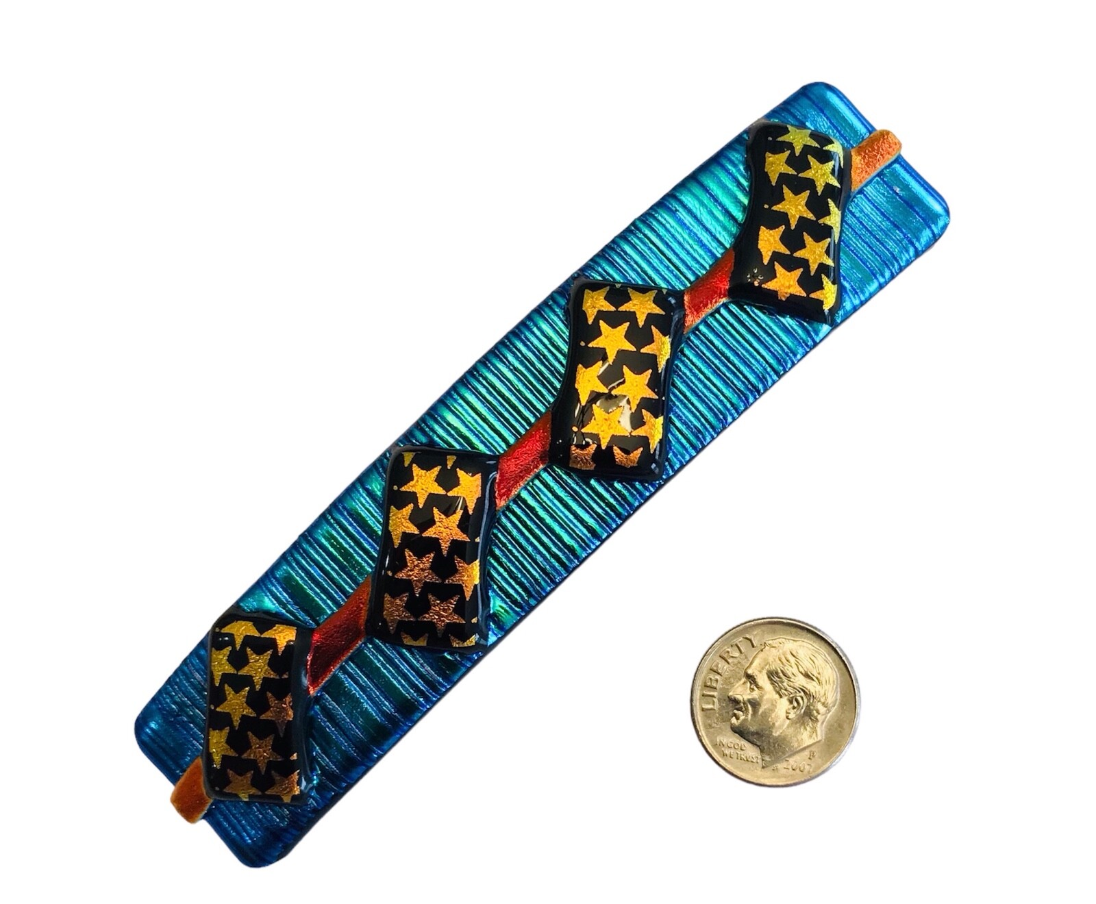Dichroic Fused Glass Hair Barrette Handmade by Janet Wolery - 4 -STARS SHINE