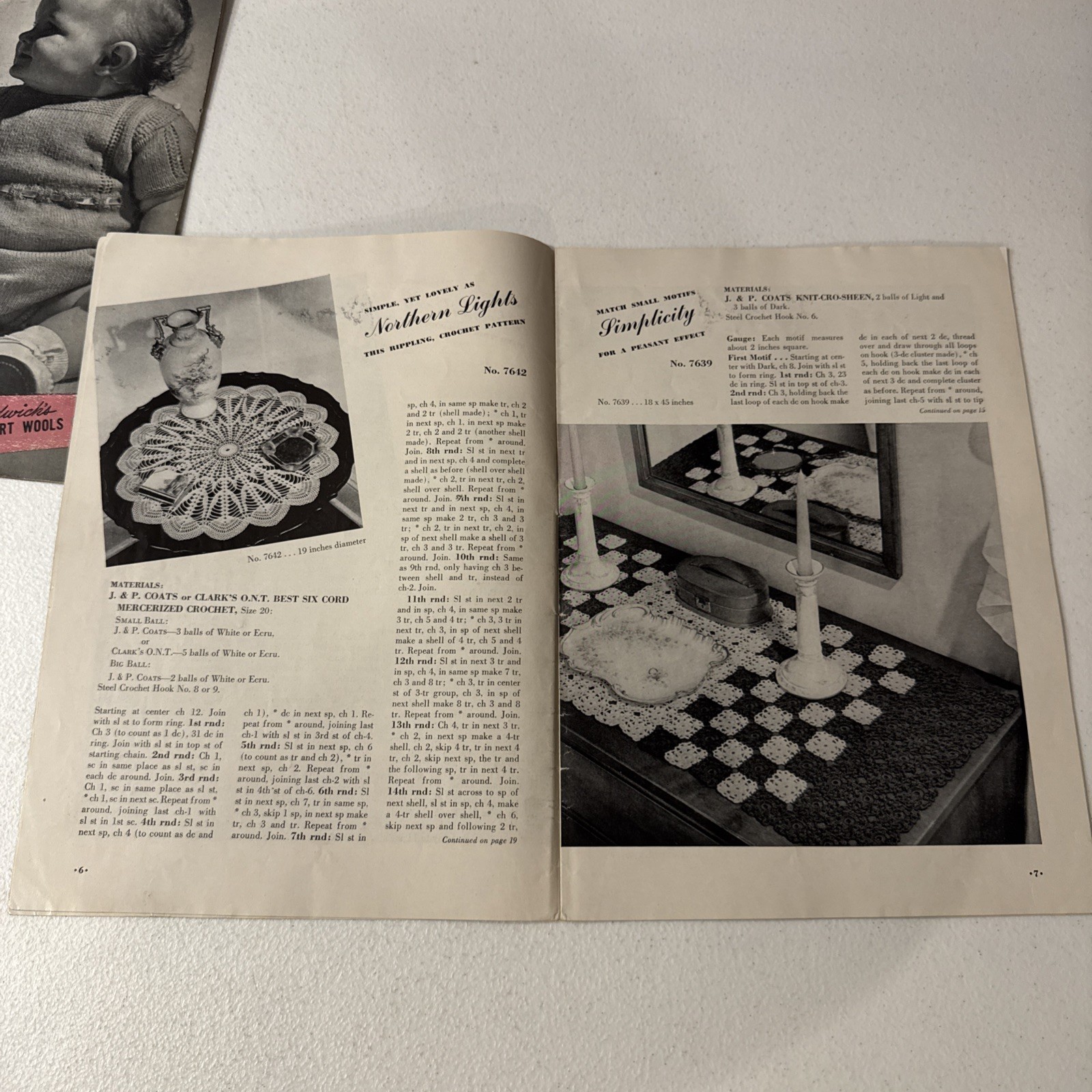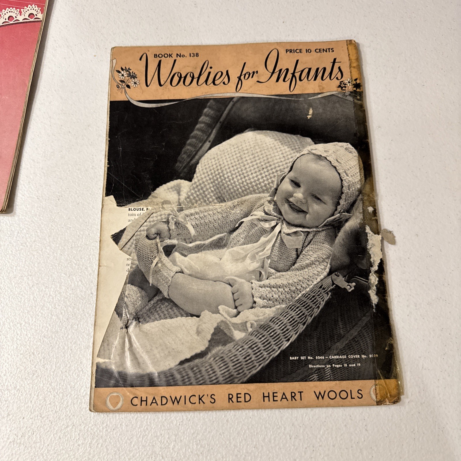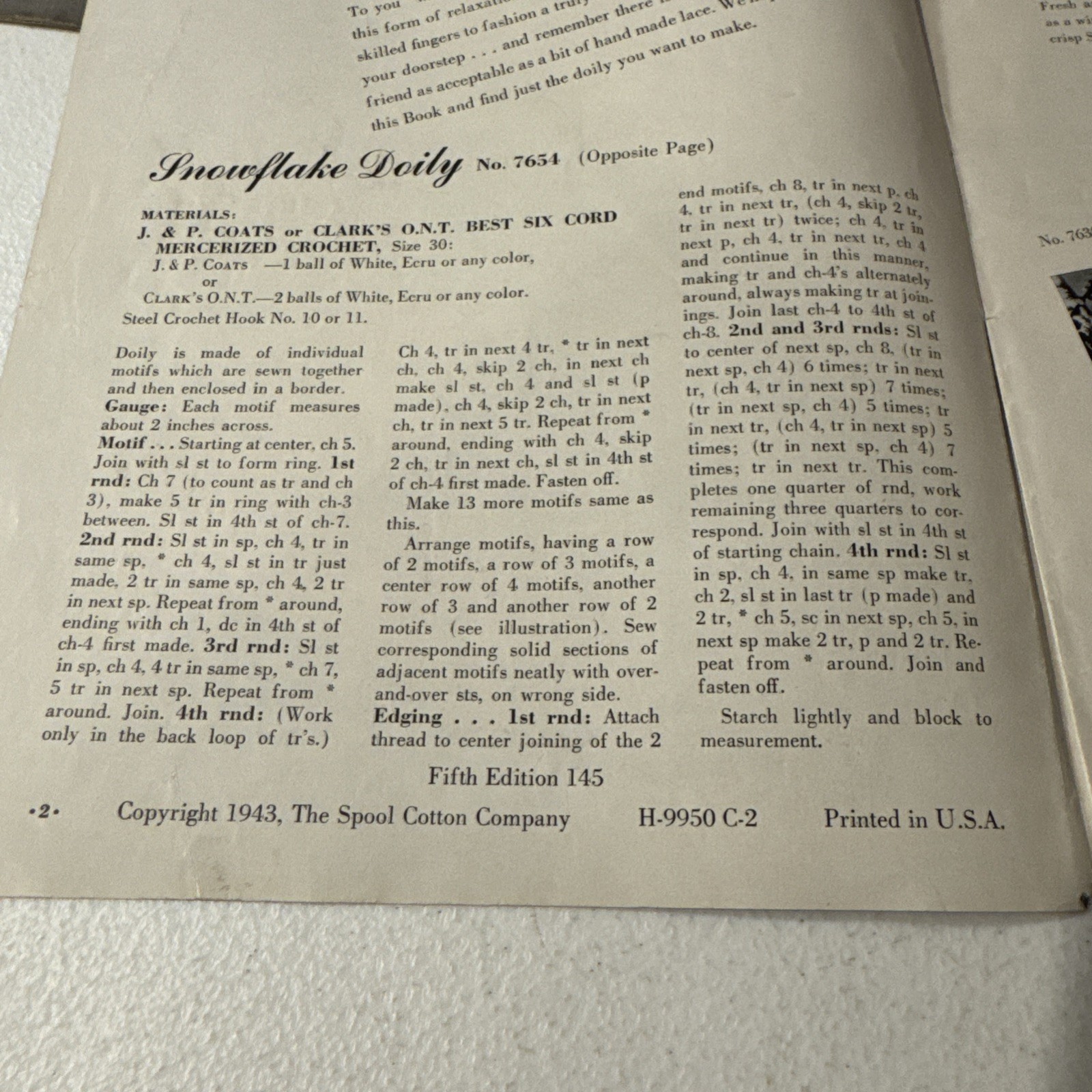 Vintage Lot Of 4 Spool Cotton Company Doilies, Laces, Knit/Crochet Pattern Books
