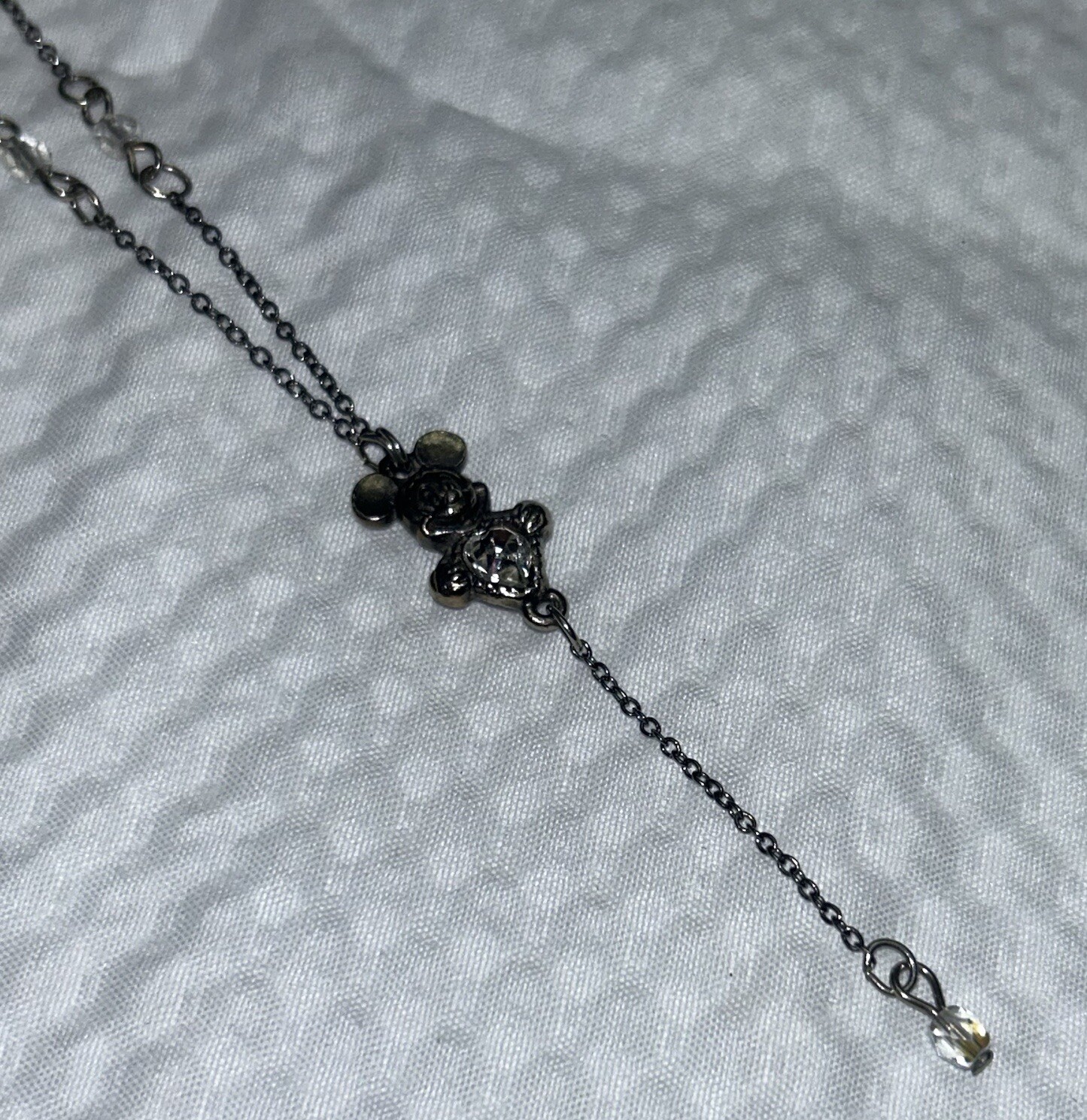 • Disney Mikey Mouse Silver Crystal Dangling Y Necklace 12" Stamped Vintage