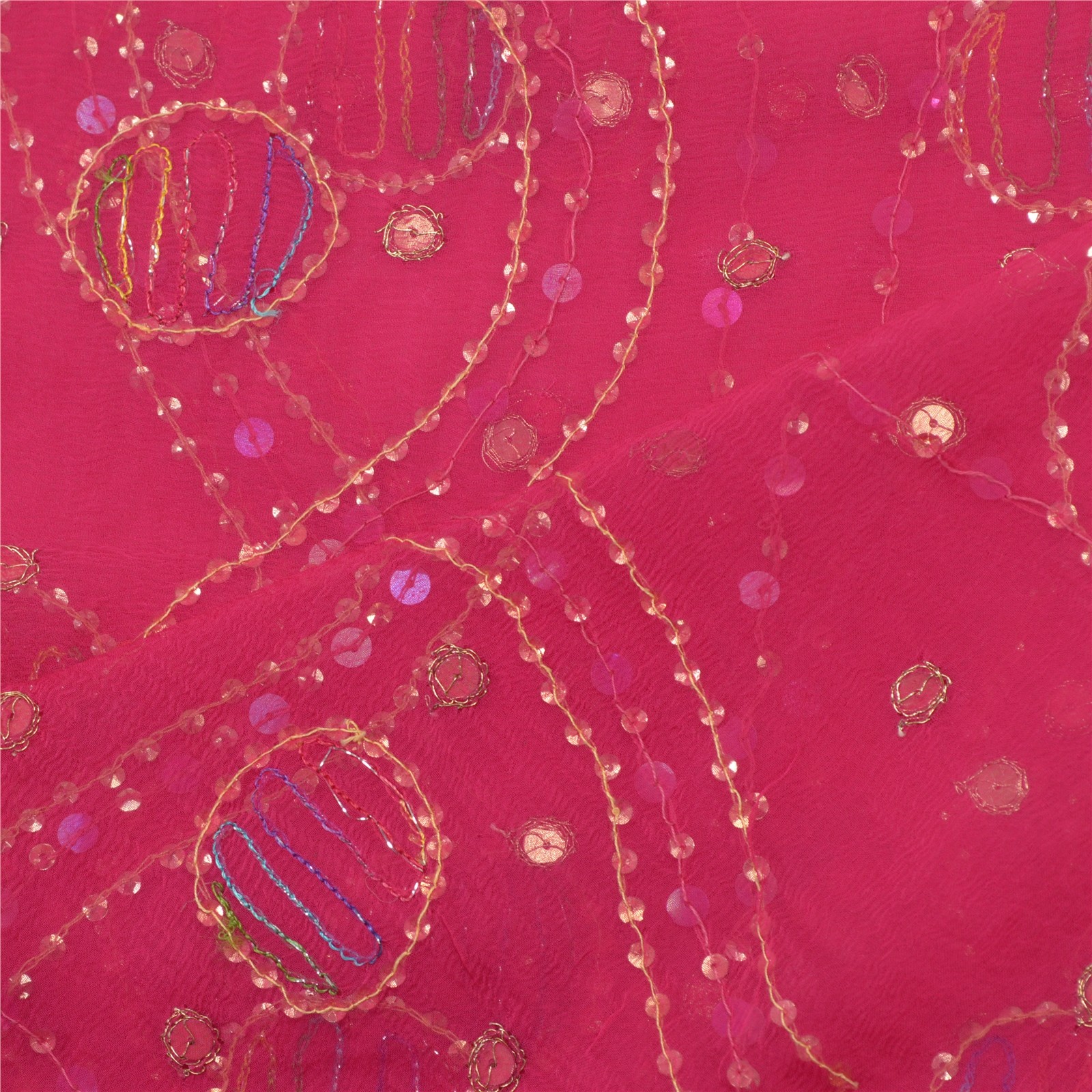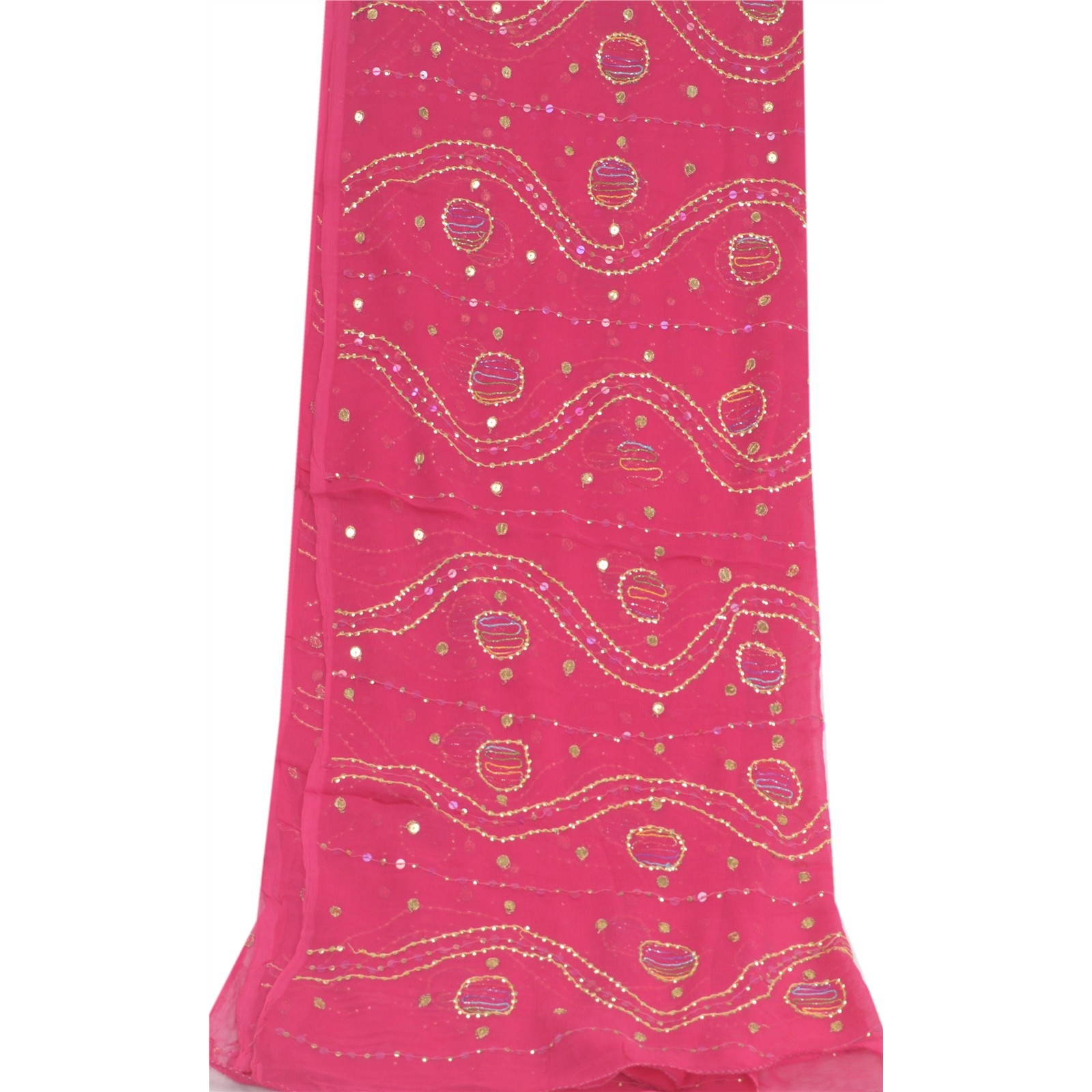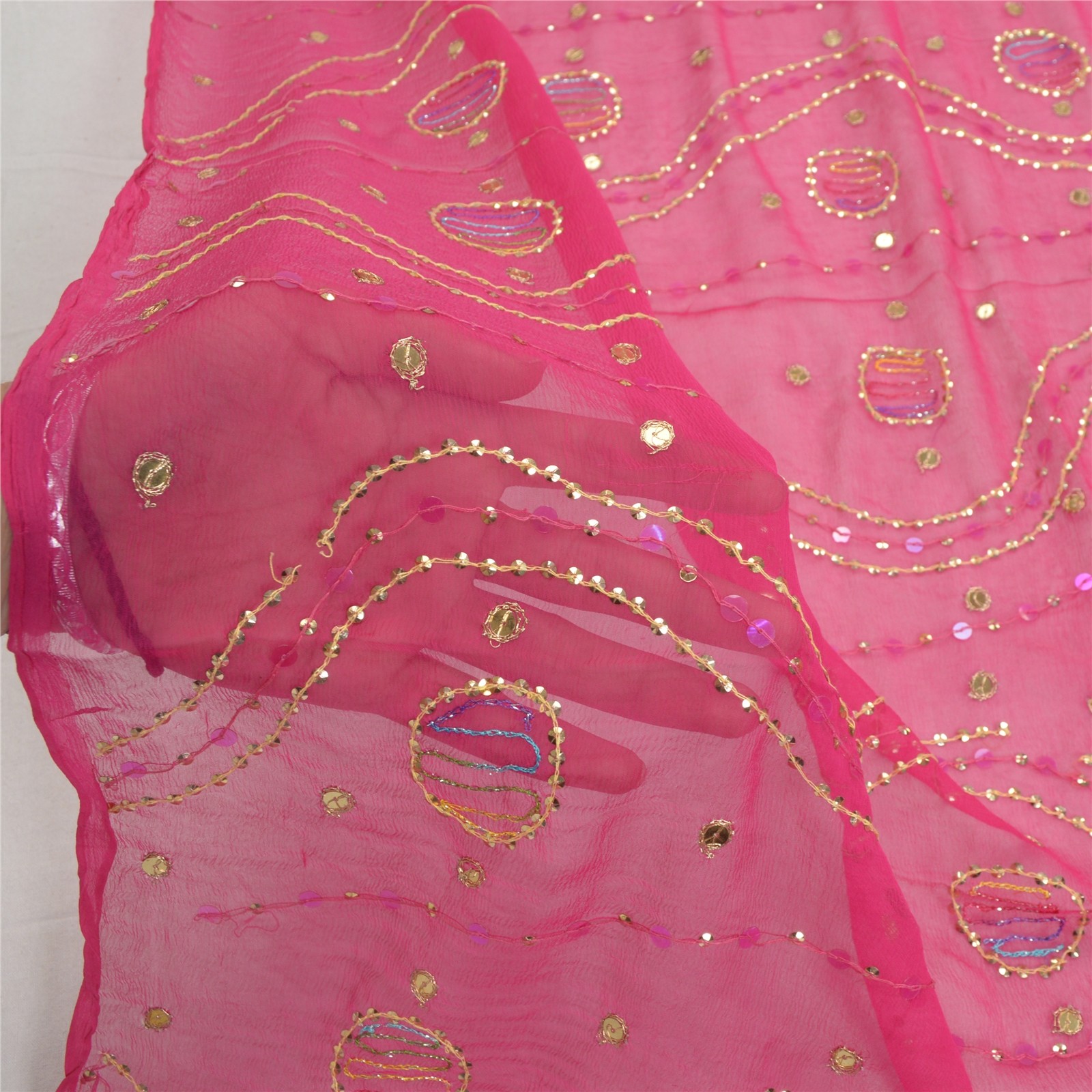 Sanskriti Vintage Dupatta Long Stole Pure Chiffon Silk Pink Hand Beaded Veil