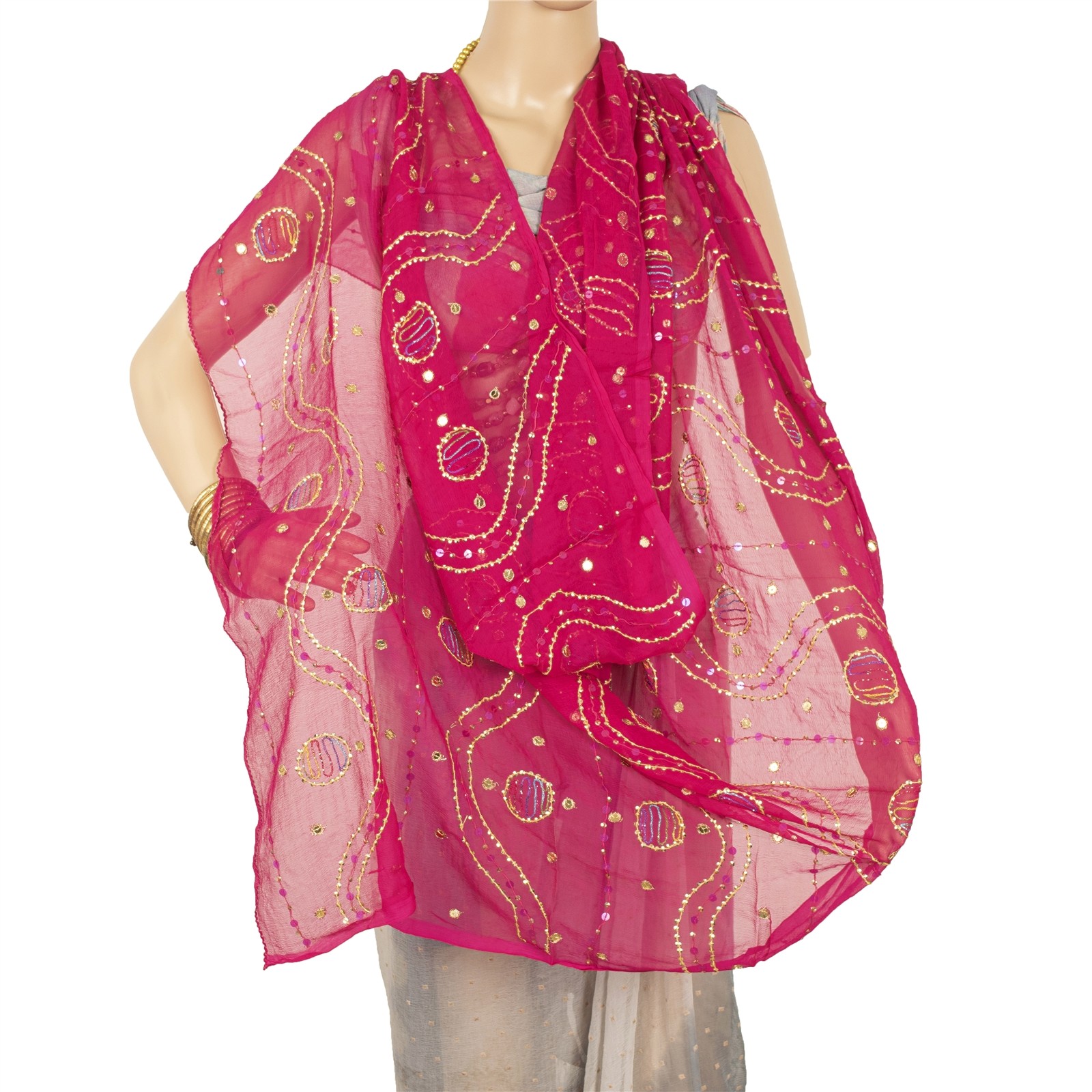 как выглядит Sanskriti Vintage Dupatta Long Stole Pure Chiffon Silk Pink Hand Beaded Veil фото