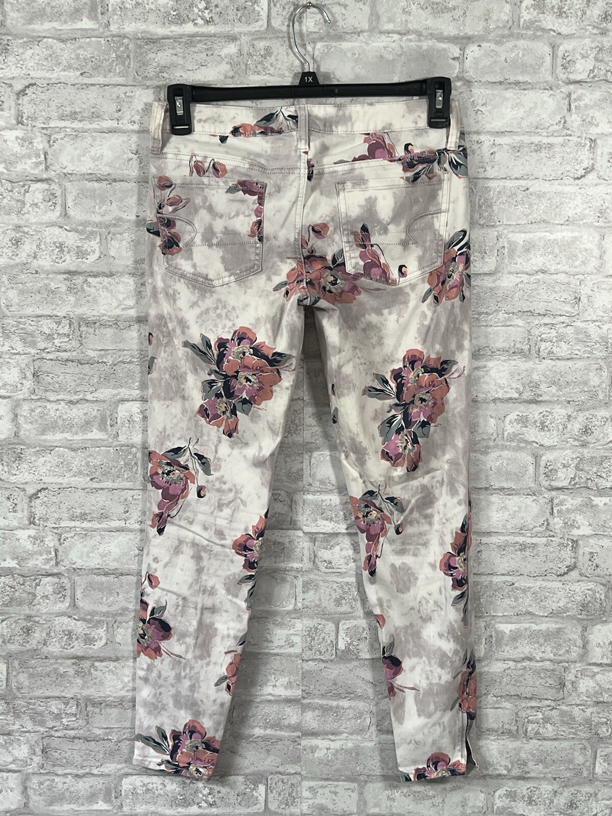 American Eagle White Floral Stretch Pants Skinny Leggings Women s Size 6