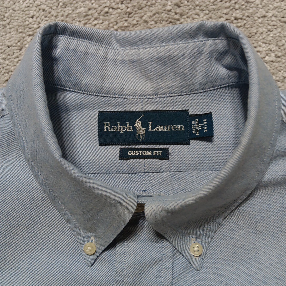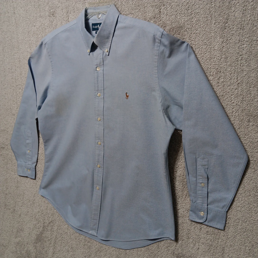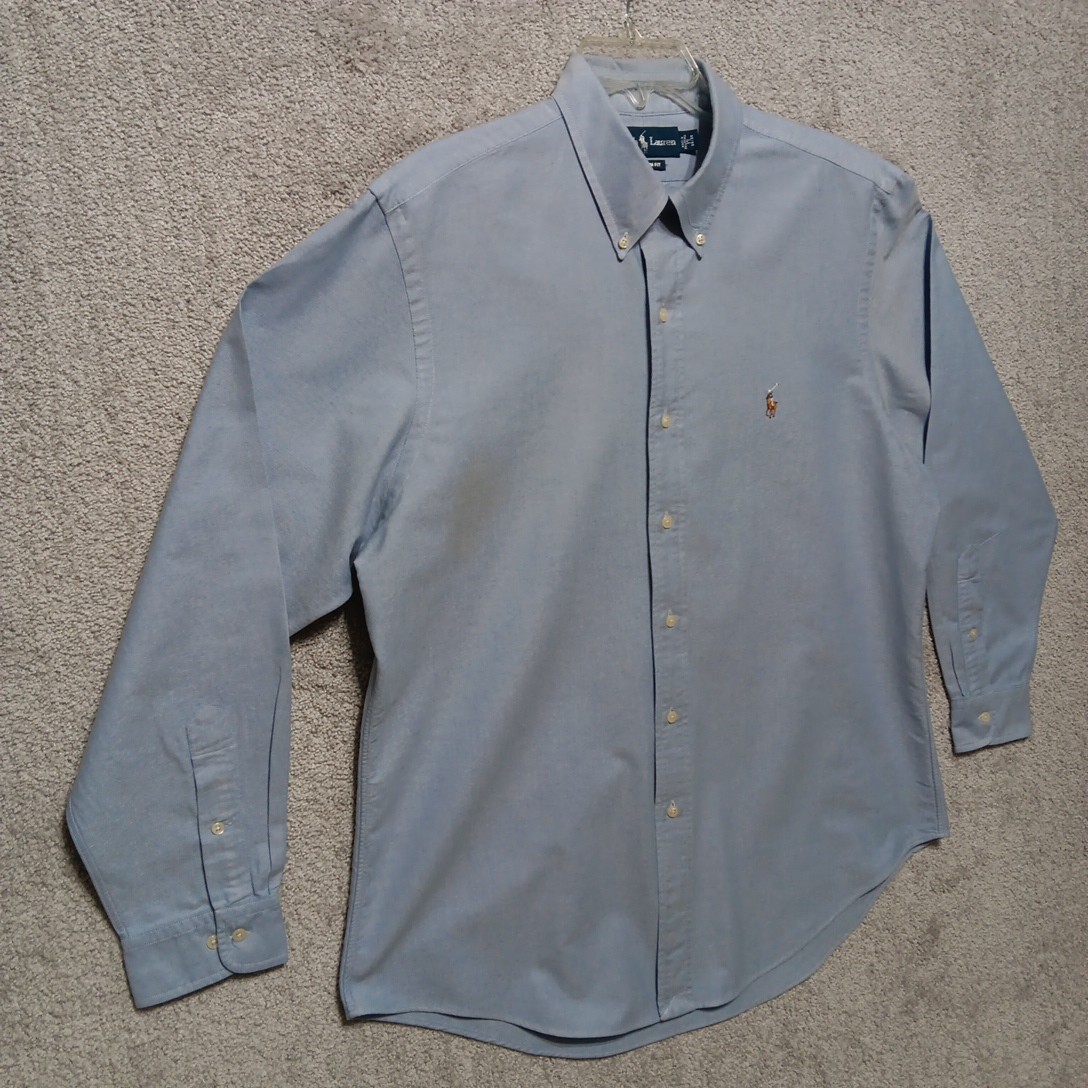 как выглядит VTG Polo Ralph Lauren Shirt Men s Large Blue Oxford Custom Fit Preppy 90s READ фото