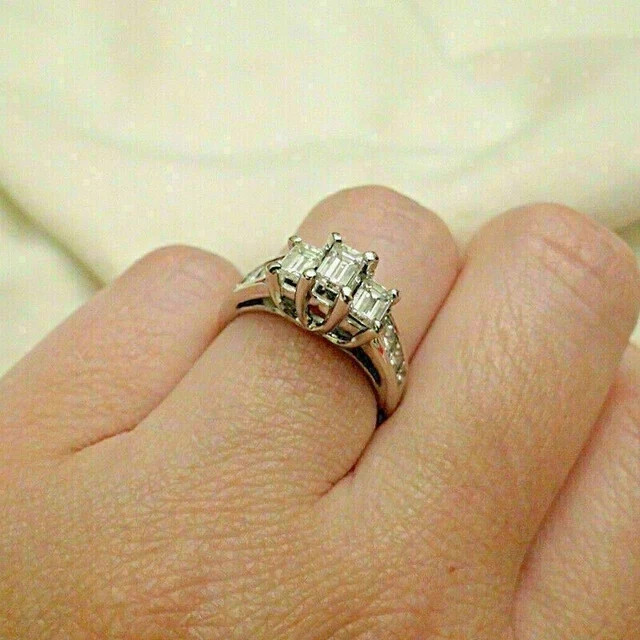как выглядит 2CT Emerald-Cut Lab Created Solitaire Engagement Ring 14K White Gold Plated фото