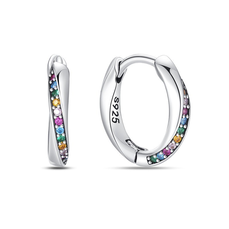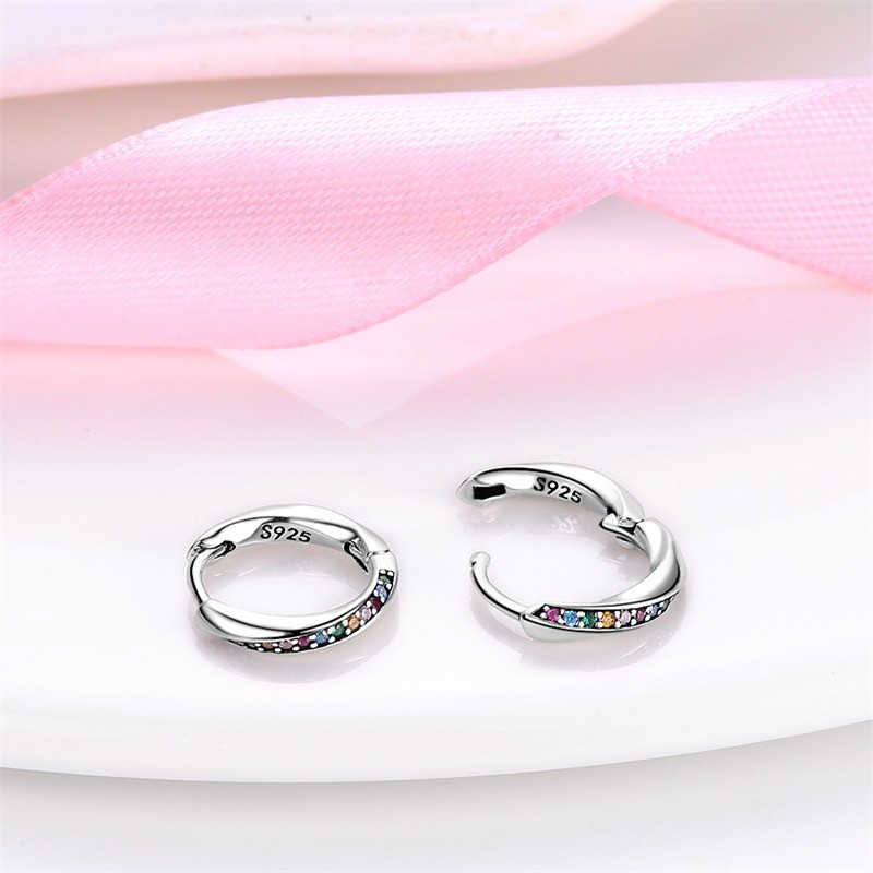 как выглядит PANDACH 925 Sterling Silver Tiny Colorful CZ Huggie Hoop Earrings For Women Gift фото