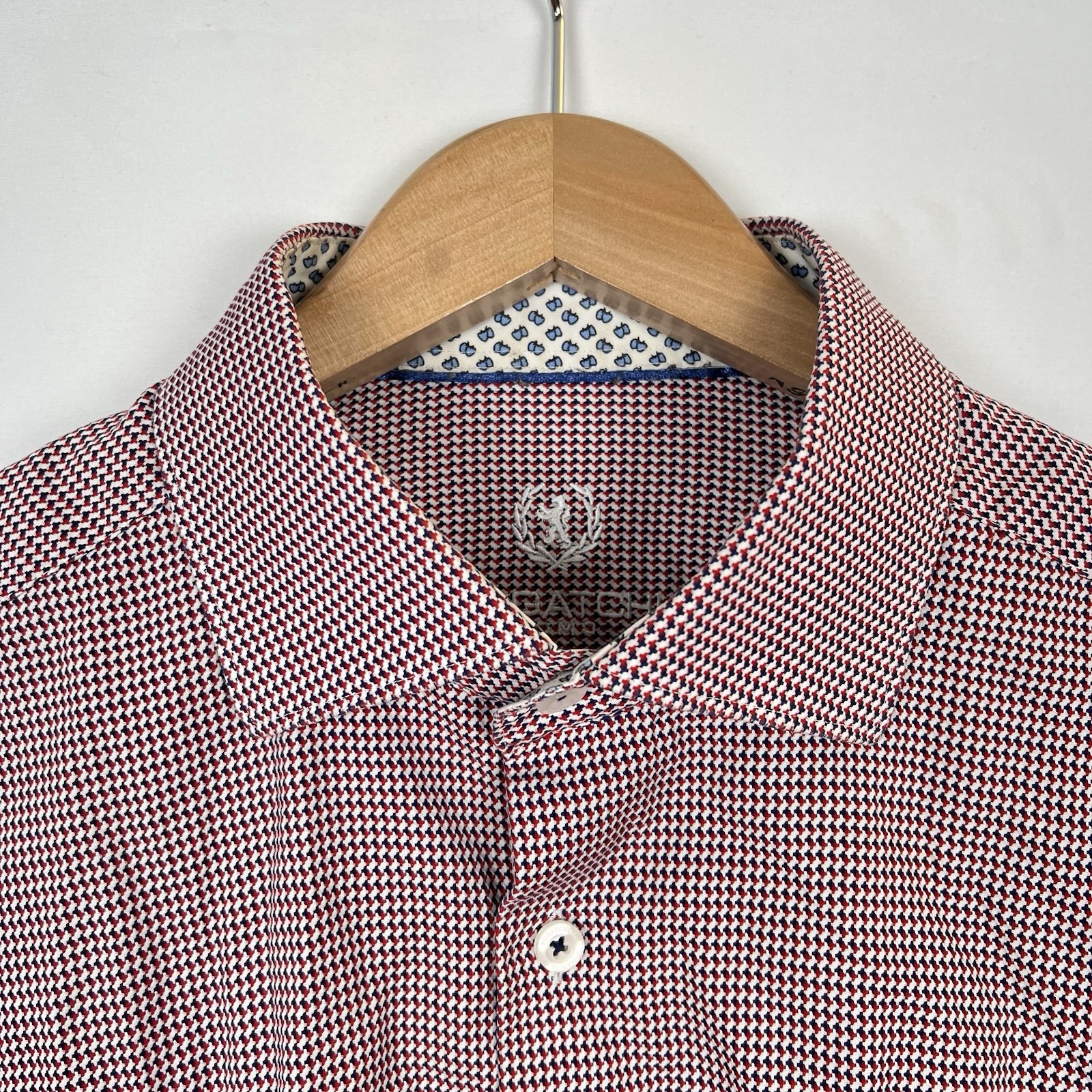 Bugatchi Uomo Men s Dress Shirt 16.5 32/33 Flip Cuff Red Geometric Business