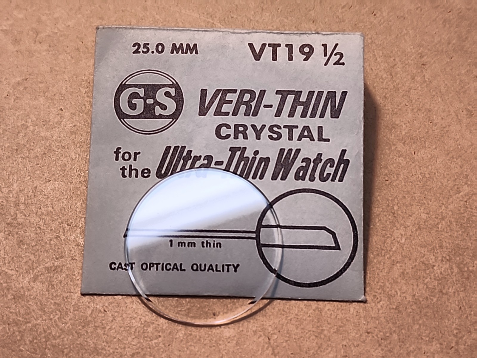 Vintage NOS GS Veri-Thin VT 19-1/2 25mm Wristwatch Crystal