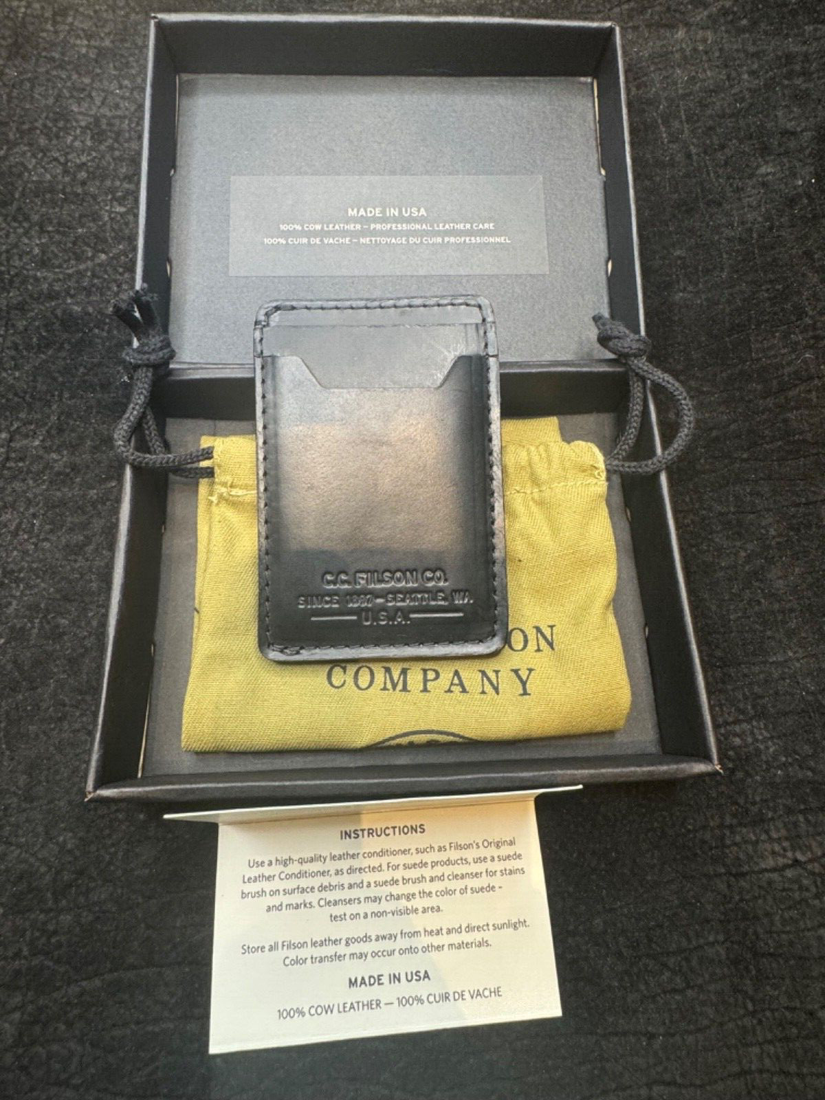 • New in Box Filson Leather Card Case in Black Leather 20218178 Rare USA
