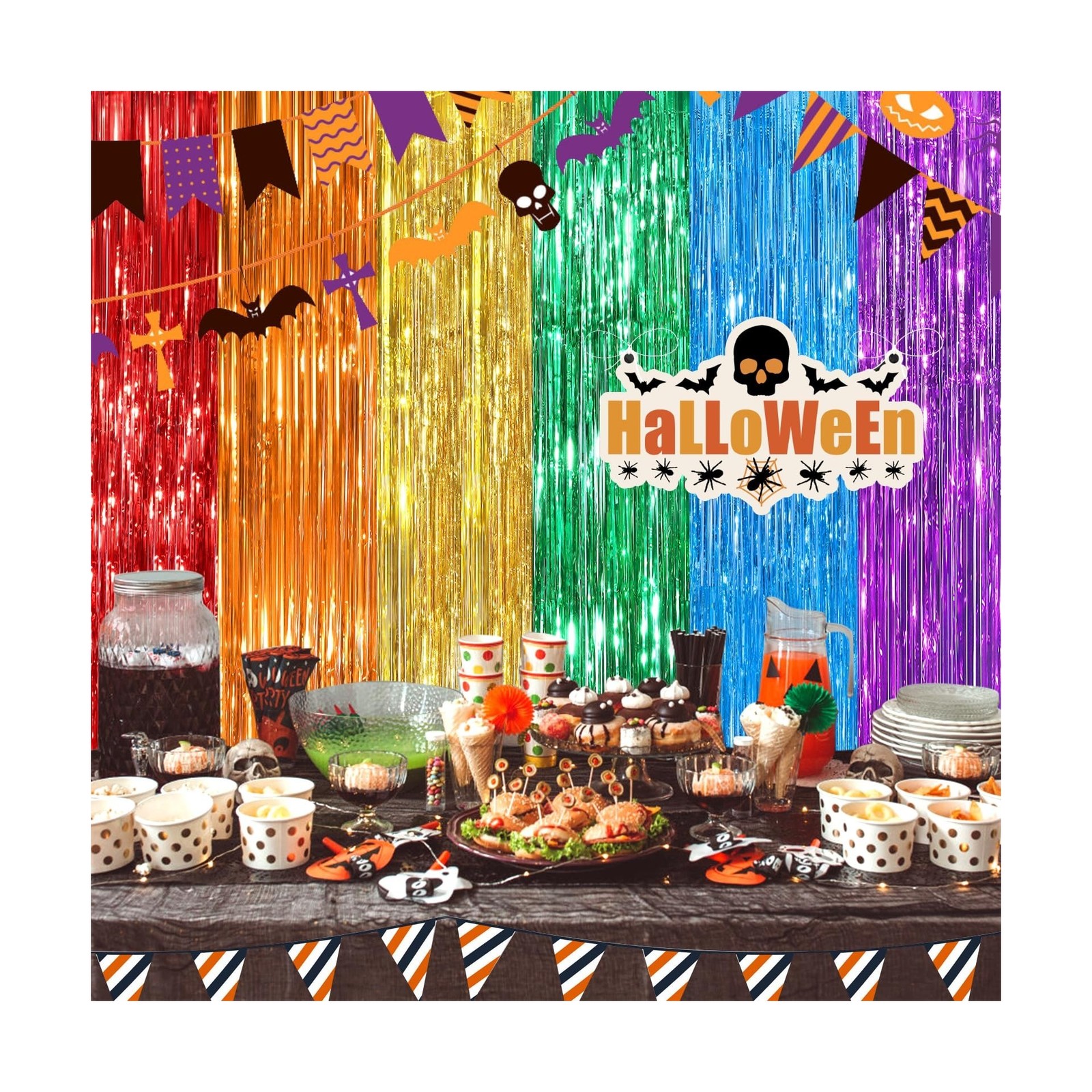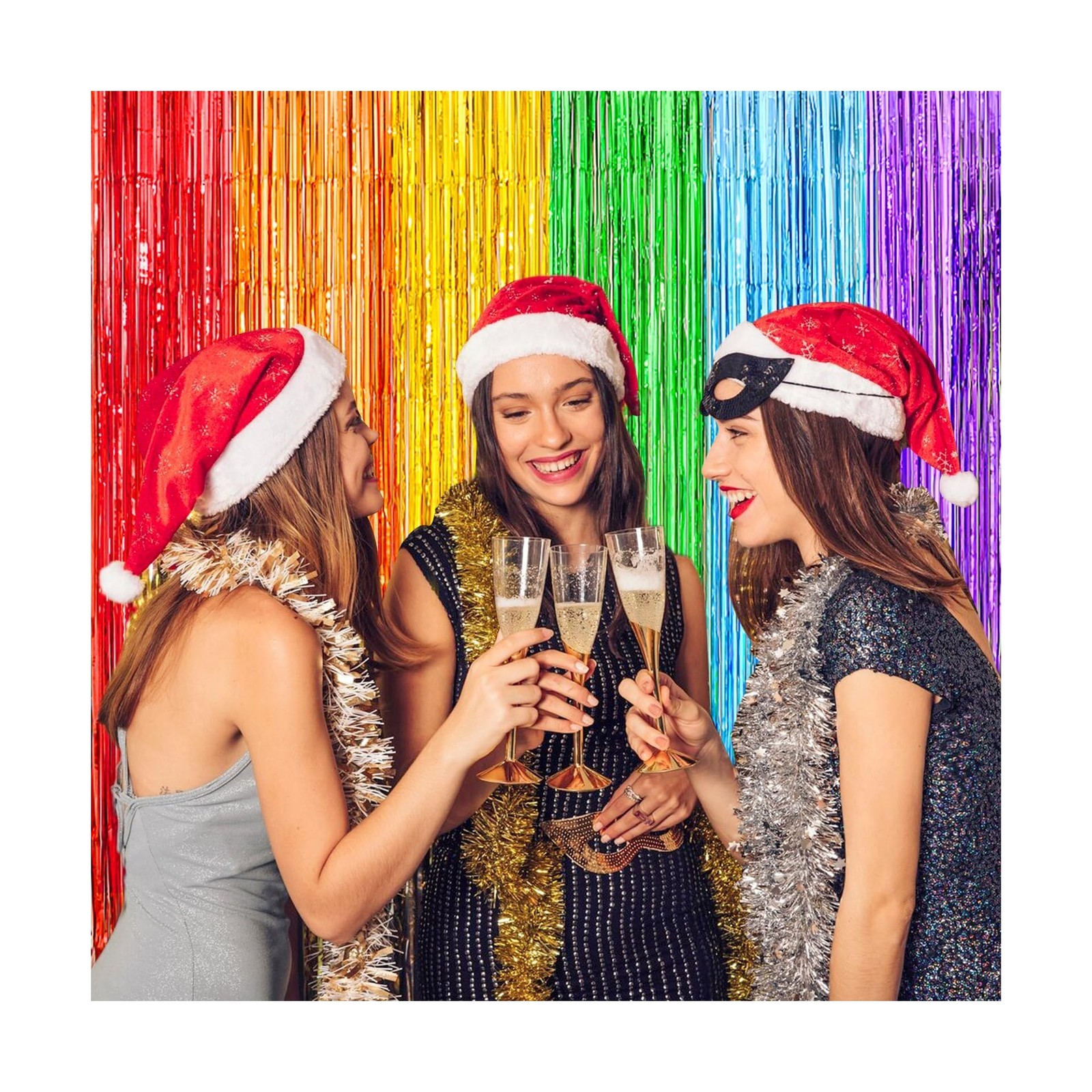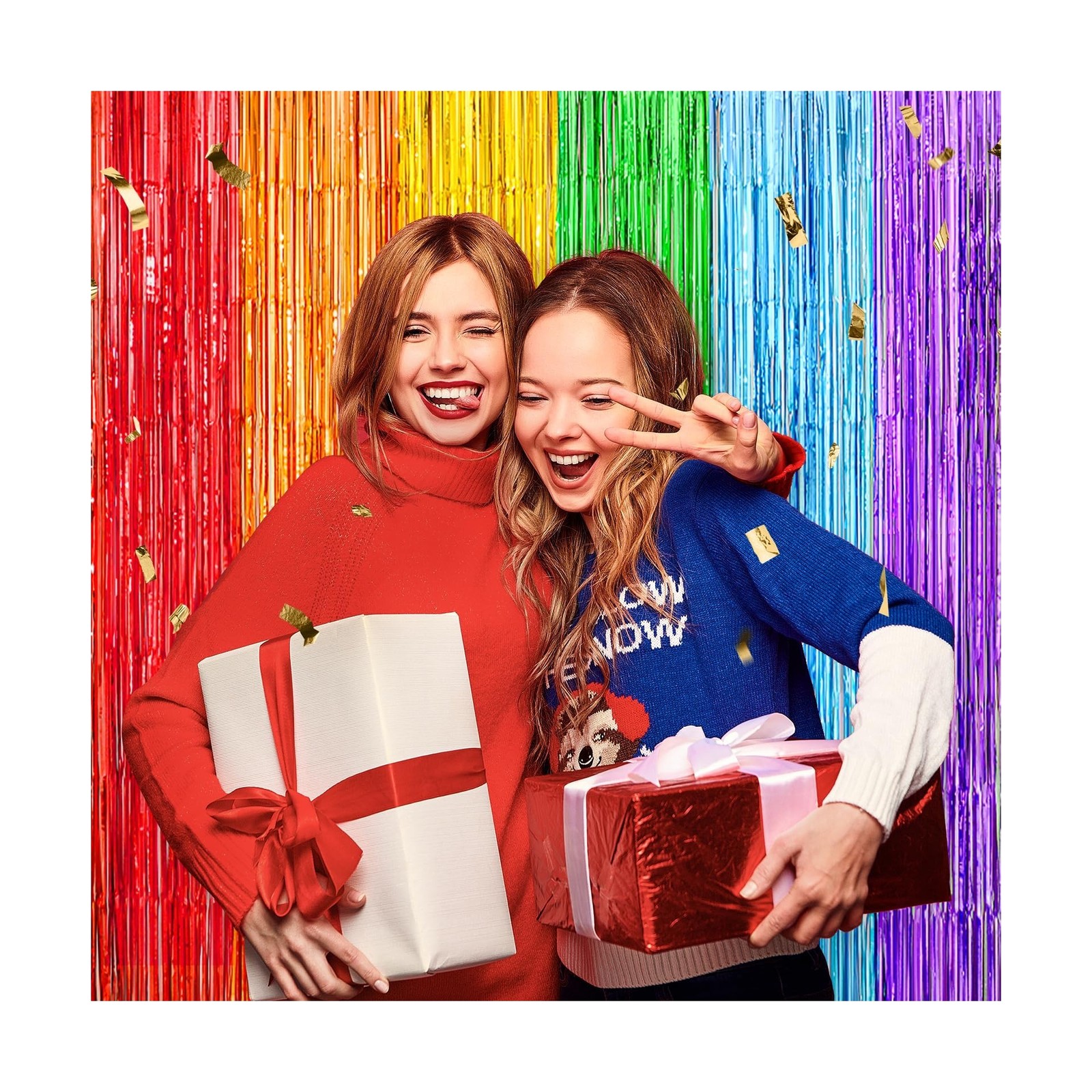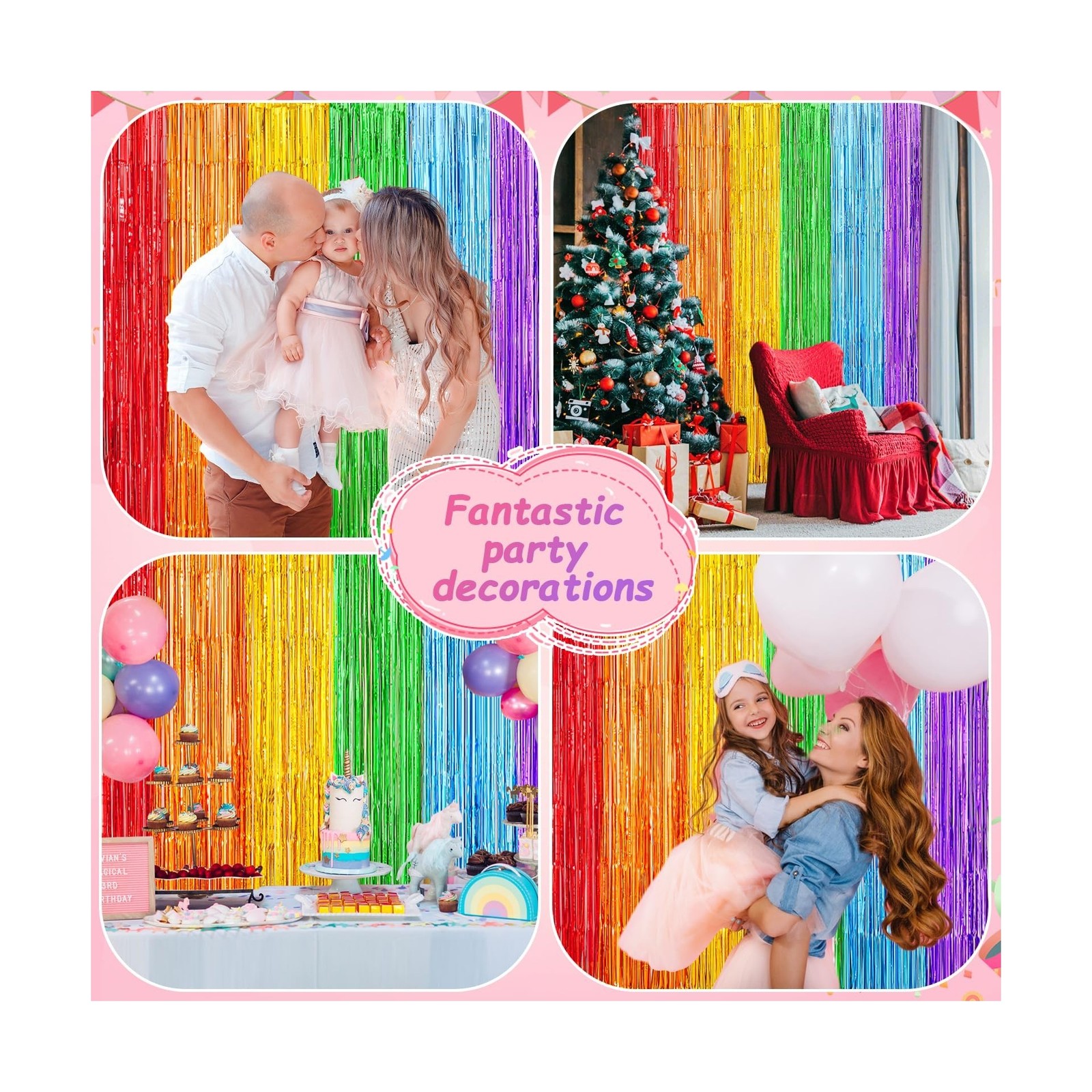 Rainbow Metallic Tinsel Foil Fringe Curtains Backdrop 2Pack 3.3x8.3Ft Party S...