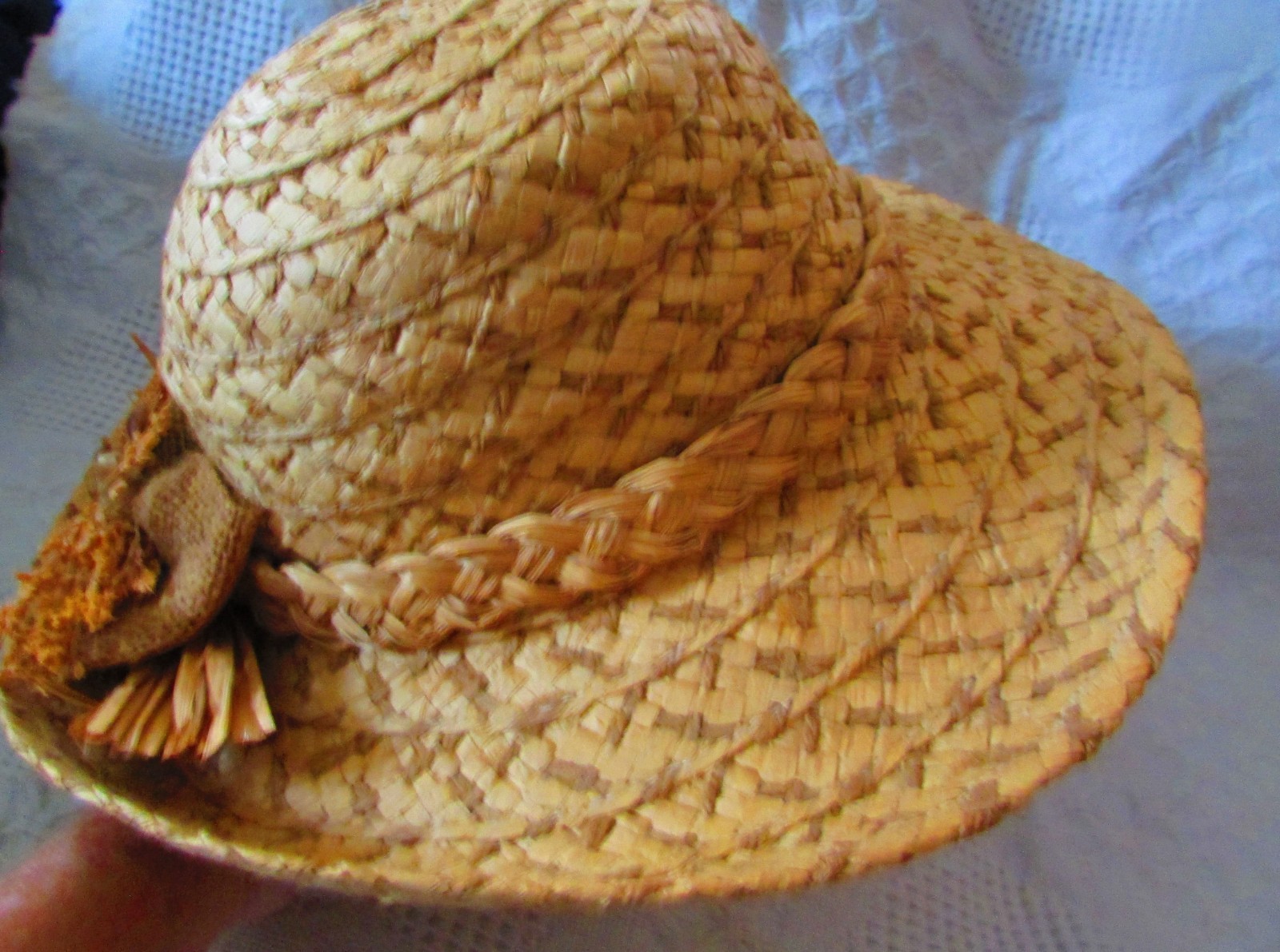 как выглядит Womans Floppy Straw Hat With Decoration On Brim фото