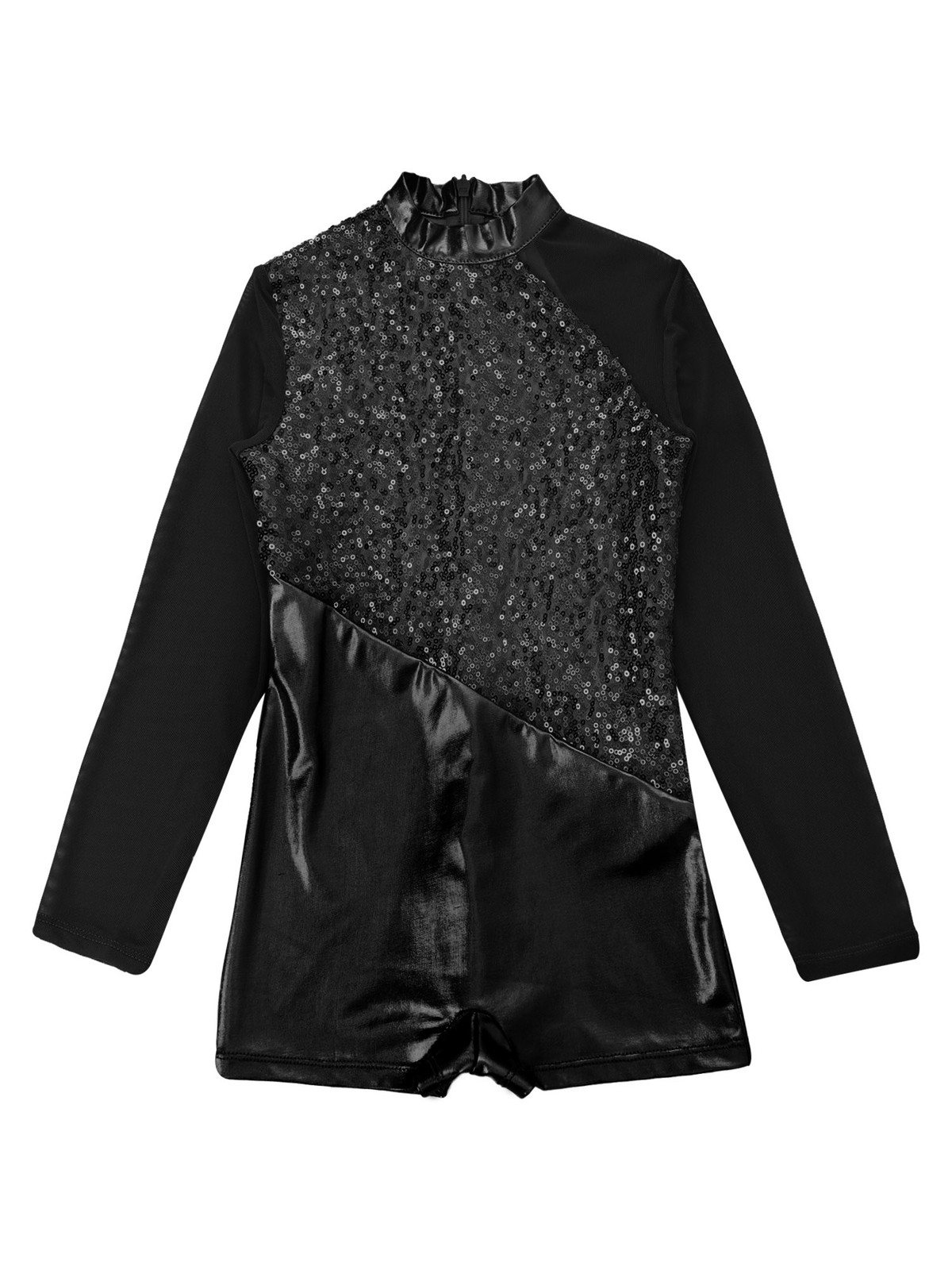 Girl Metallic Bodysuit Sparkle Sequin Long Sleeve Ballet Dance Jumpsuit Hairband