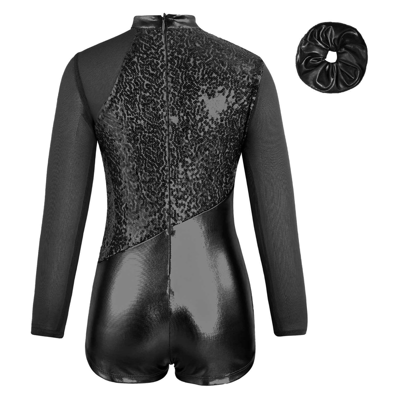 как выглядит Girl Metallic Bodysuit Sparkle Sequin Long Sleeve Ballet Dance Jumpsuit Hairband фото
