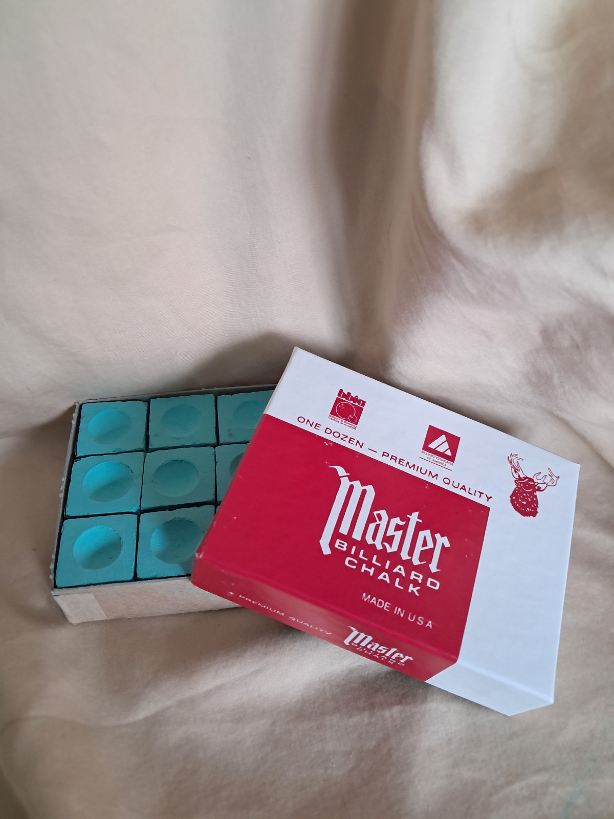 Box of MASTER pool cue tip Billiard CHALK - One Dozen GREEN Cubes LKJ