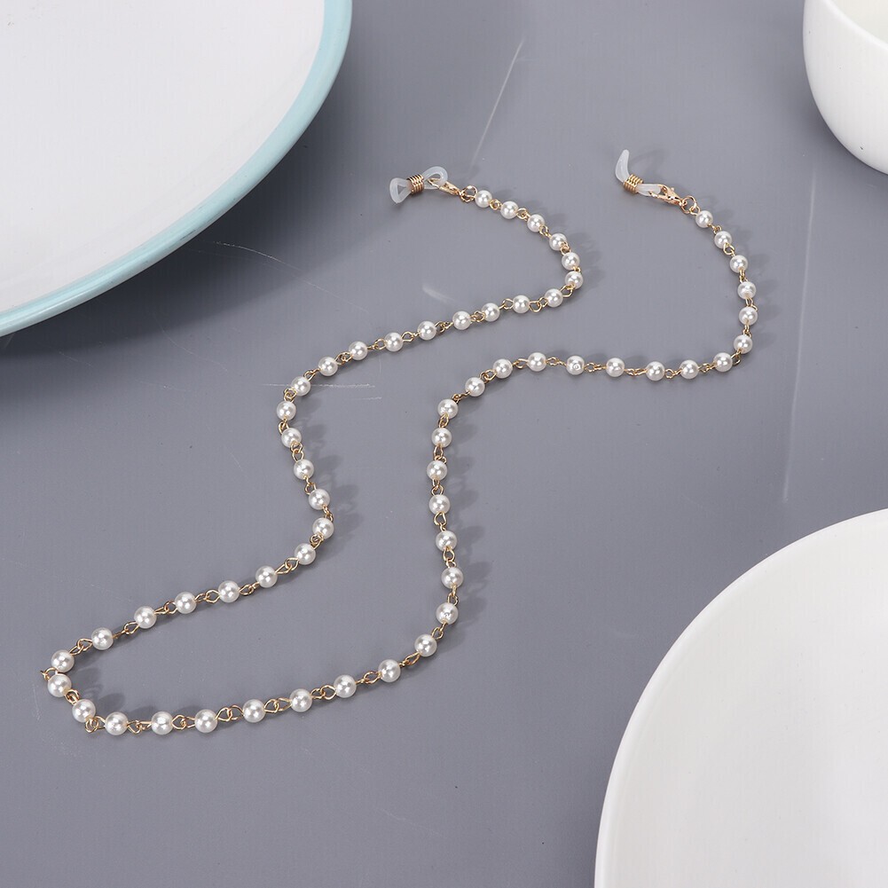 как выглядит Fashion White Faux Pearl Beaded Sunglass Reading Glasses Eyeglasses Chain фото