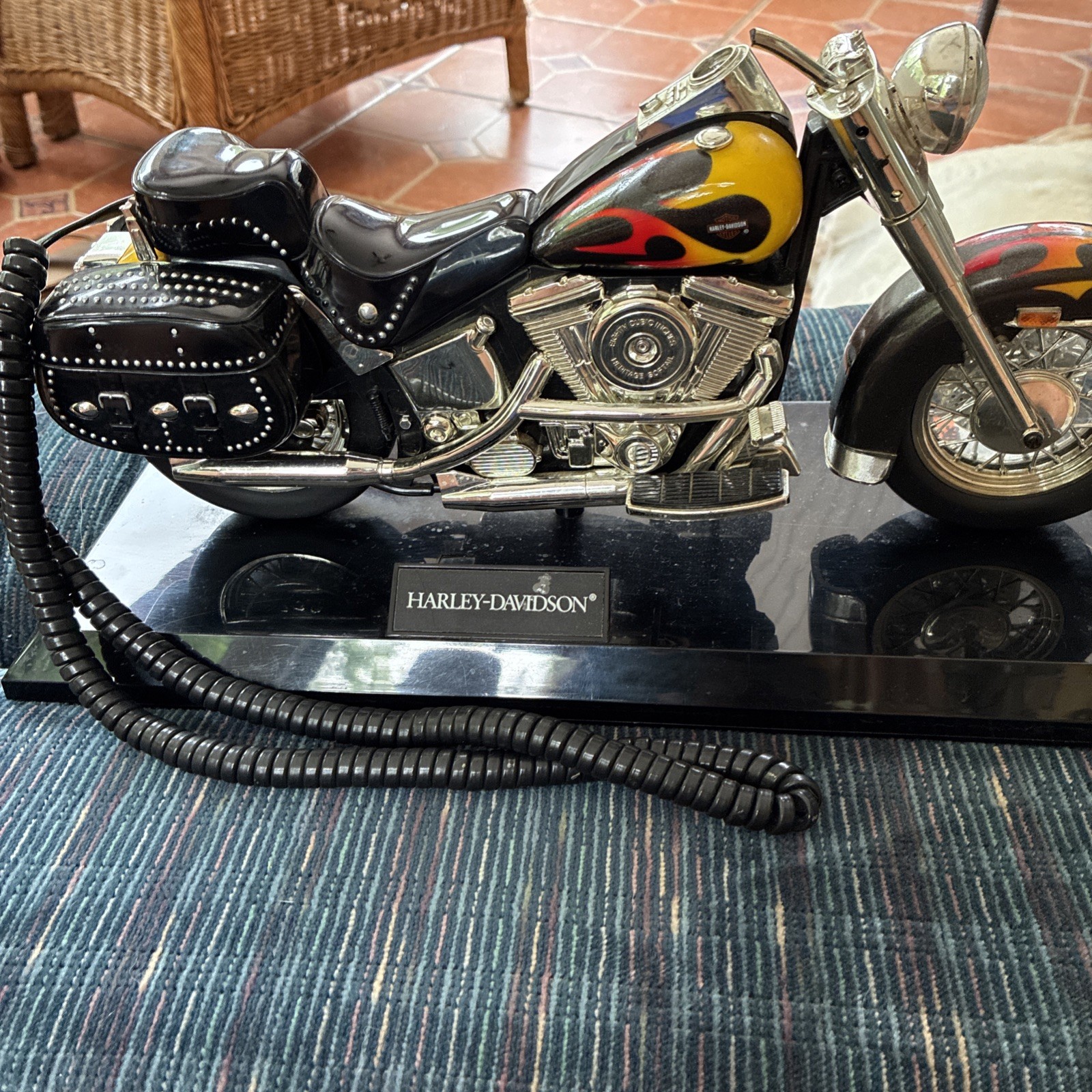 Telemania Harley Heritage Softail Yellow Red Flame Corded Telephone RARE