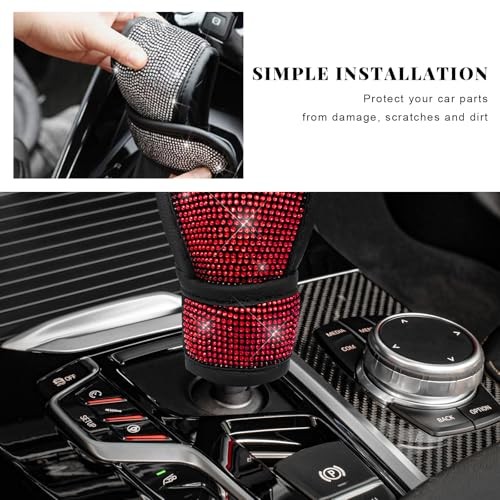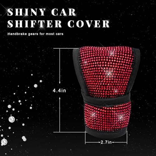 Bling Auto Gear Shift Knob Cover, Rhinestone Glitter Shifter Stick Red