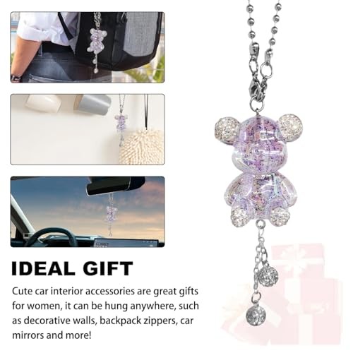 Bling Bear Car Hanging Ornament, Crystal Bear Lucky Pendant Rear View Purple