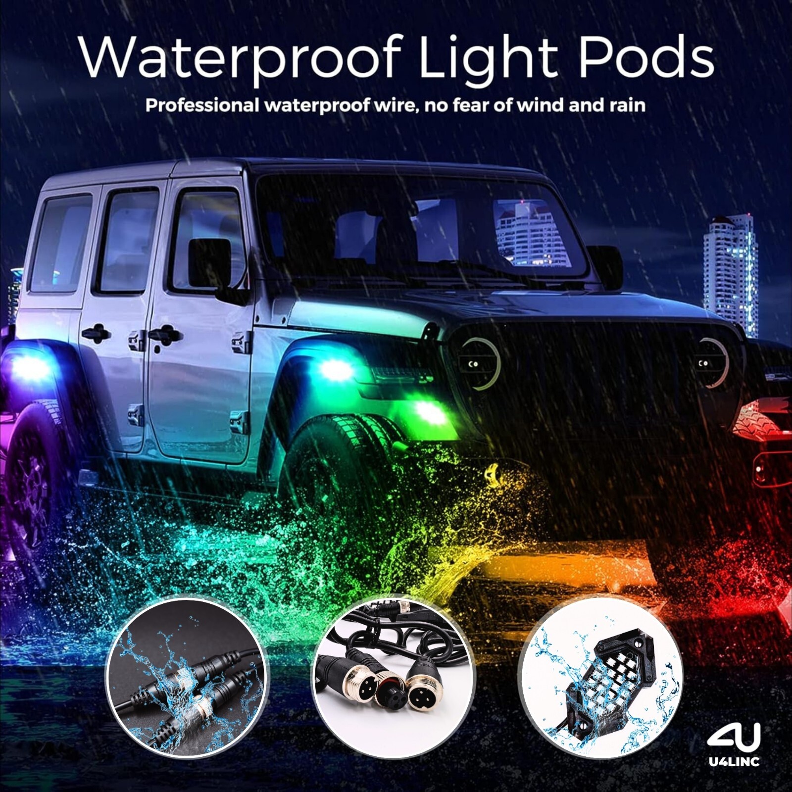 4 Pods RGB LED Rock Lights APP Remote for ATV UTV Off road Car Jeep Truck