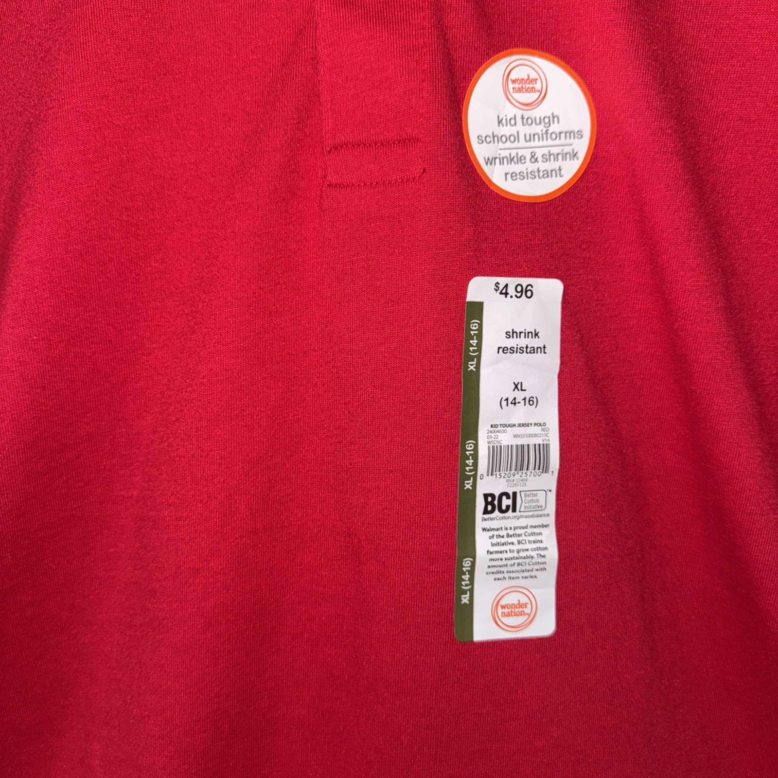 Wonder Nation Kids Red Short Sleeve Polo Uniform Shirt Size XL 14-16