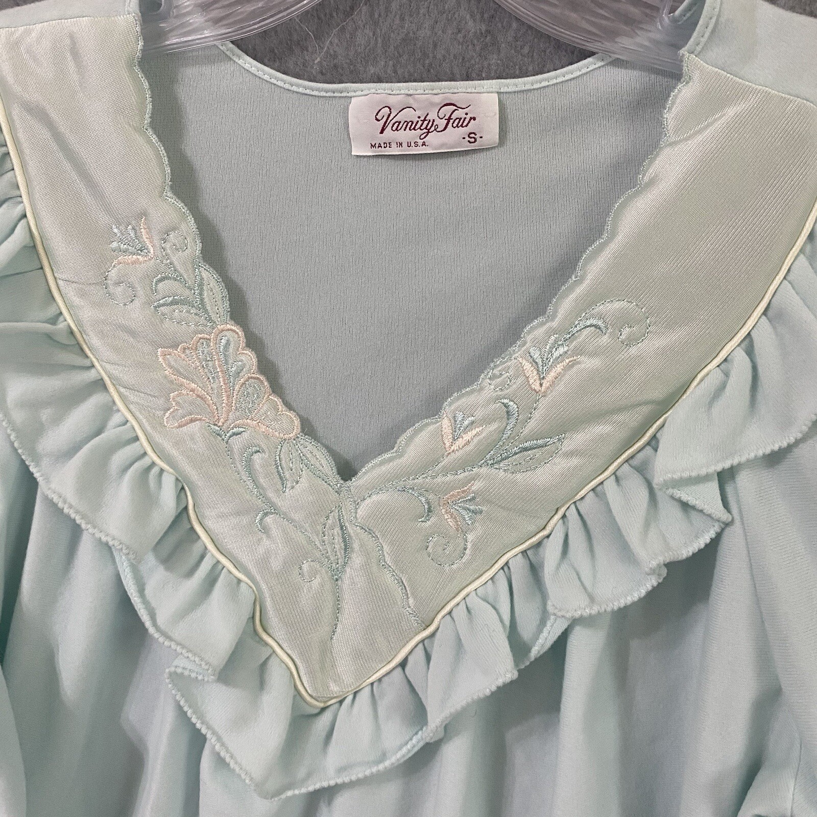 как выглядит Vanity Fair Nightgown Women Small Pale Blue Lace Long Sleeve Nylon Modest Lounge фото