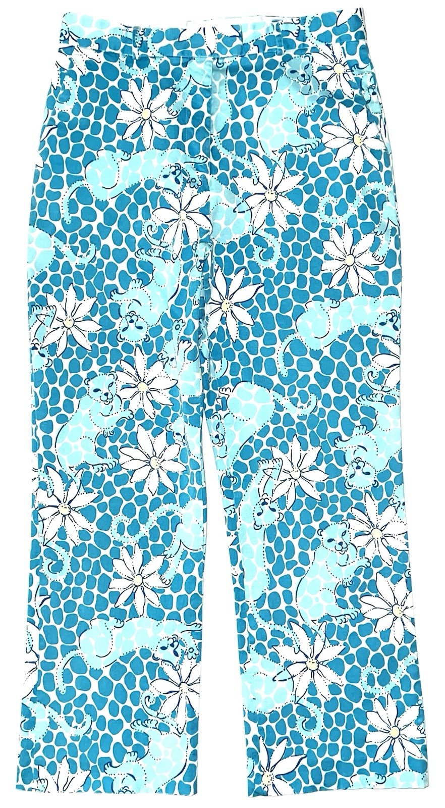 VTG 90s Lilly Pulitzer Leopard Lounge Stretch Cotton Hi Rise Crop Pants 10 EUC
