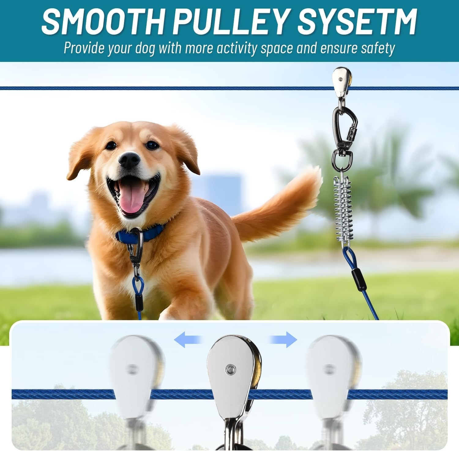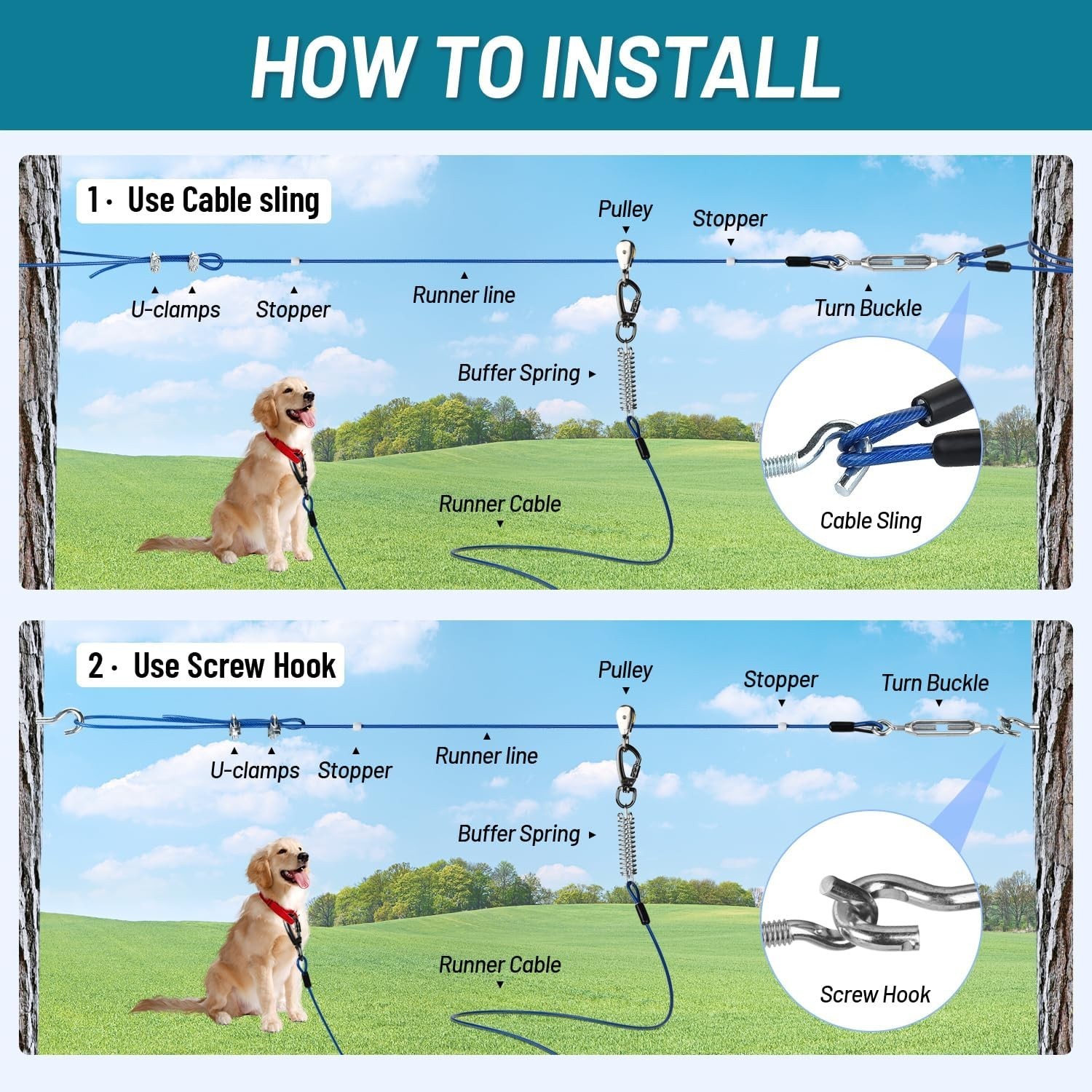 Dog Runner for Yard, Heavy Duty 200FT Dog Runs for Outside with 10FT Tie Out Cab