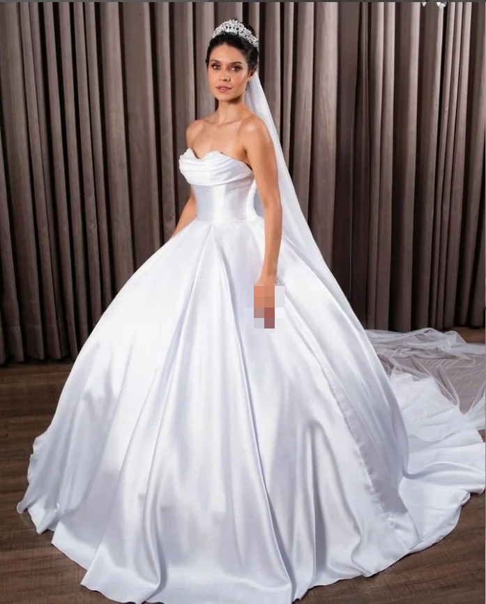 как выглядит Elegant Sweetheart Bridal Gowns Satin Ivory Corset Custom A-line Wedding Dresses фото