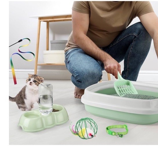 как выглядит Tioncy 7 Pcs Small Cat Kitten Starter Kit Cat Litter Box with Shovel Paw New/Oth фото