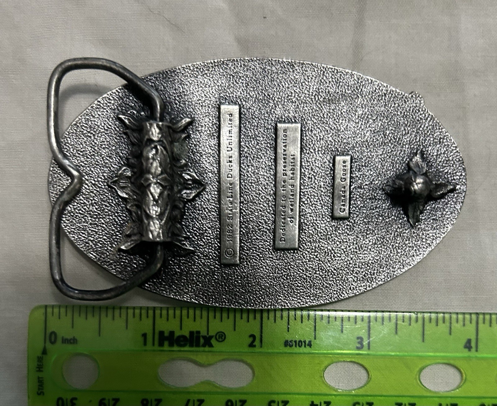 как выглядит Vtg 1982 Ducks Unlimited Belt Buckle State Line Wisconsin Illinois Canada Goose фото