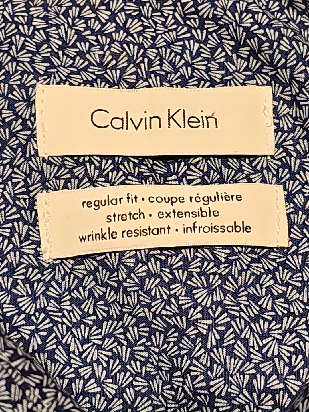 Calvin Klein Mens Dress Shirt Blue Pattern XXL 18-181/2 Wrinkle Resistant Button