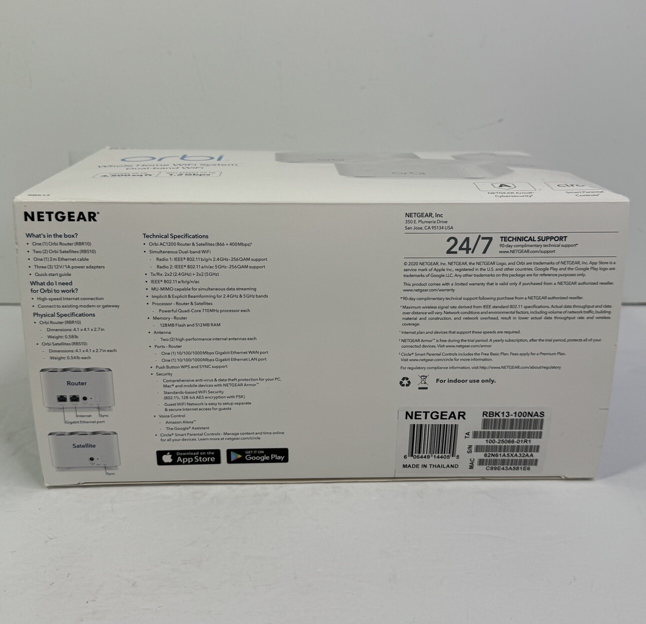 Netgear Orbi 1.2 Gbps Whole Home WiFi System Dual Band RBK13-100NAS OPEN BOX