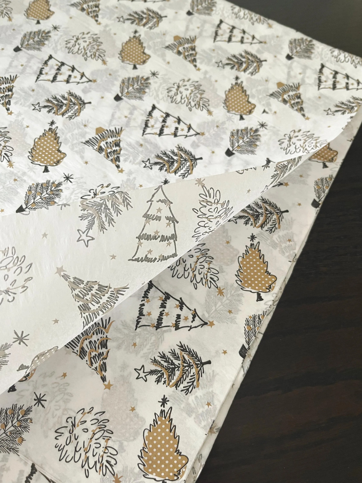 GOLDEN HOLIDAY TREES Design Tissue Paper Sheet Choose Size Package Amount