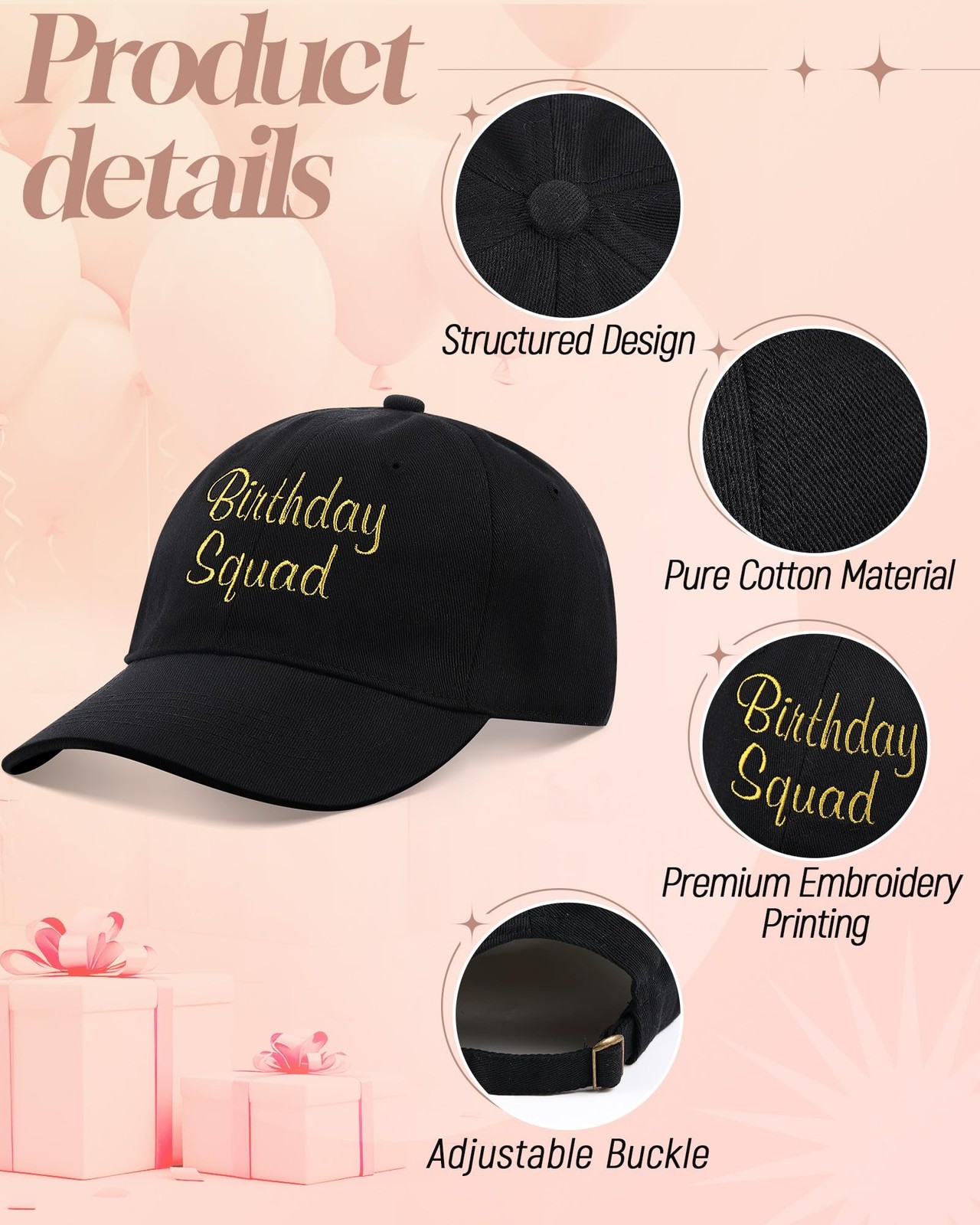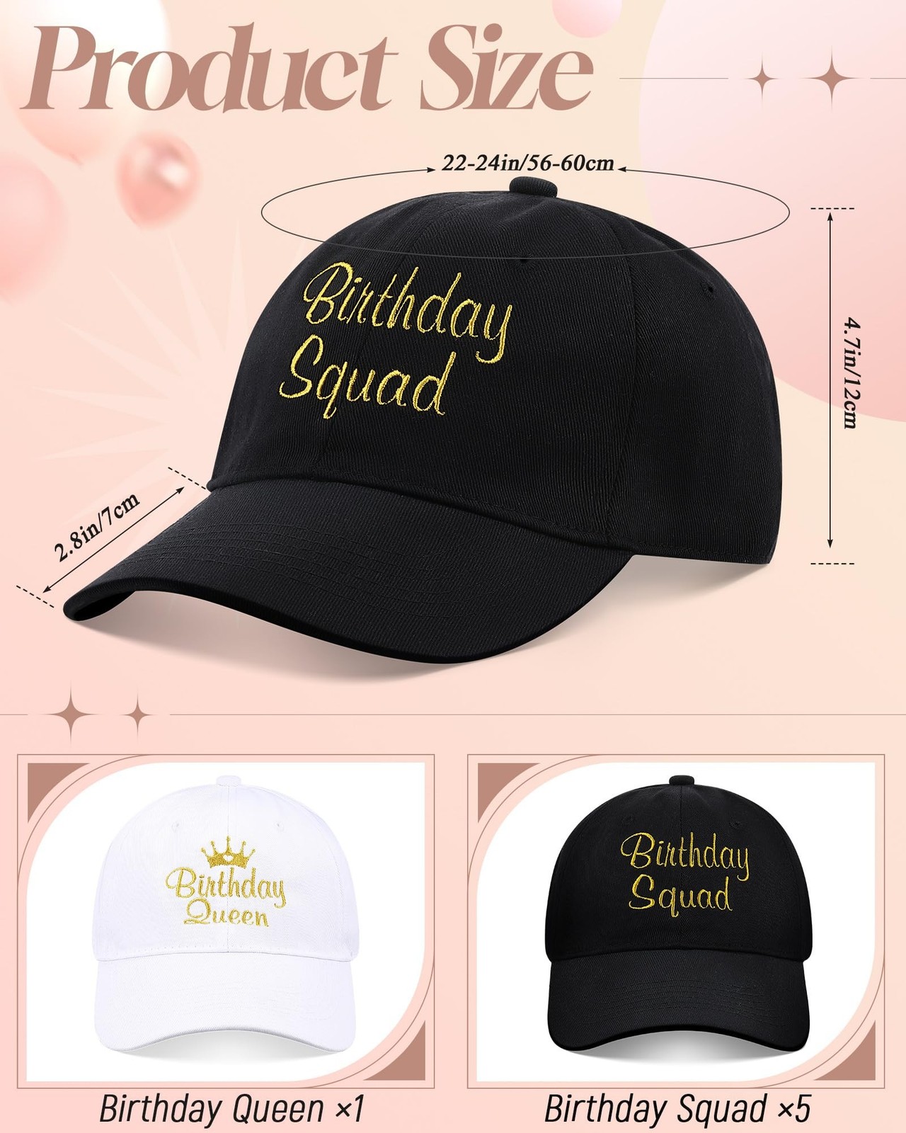 Jecery 6 Pcs Birthday Squad Hats Cap for Women Men, Birthday Queen Squad Part...
