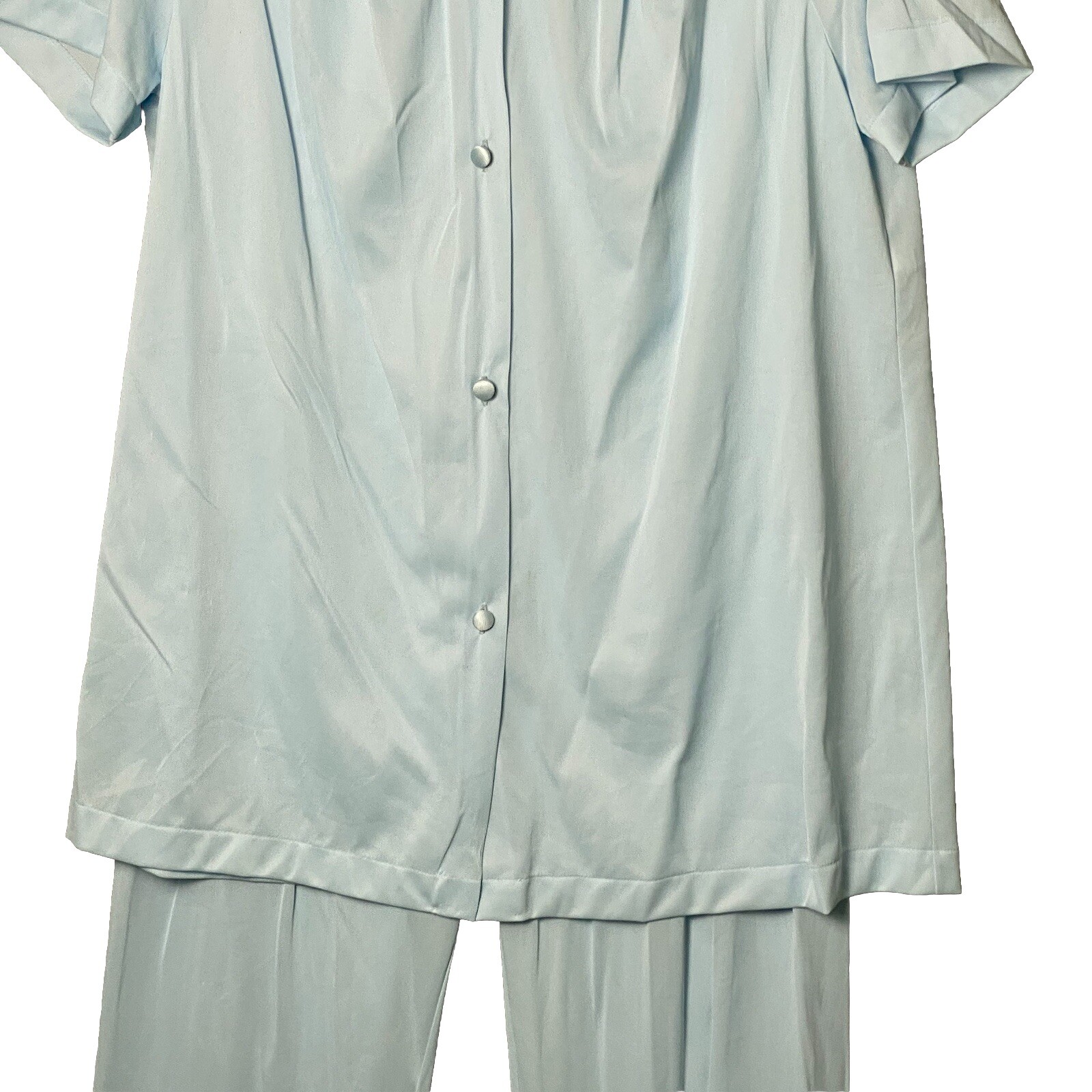 Vintage Vanity Fair Pajama Set Women Small Short Sleeve Baby Blue Nylon Floral