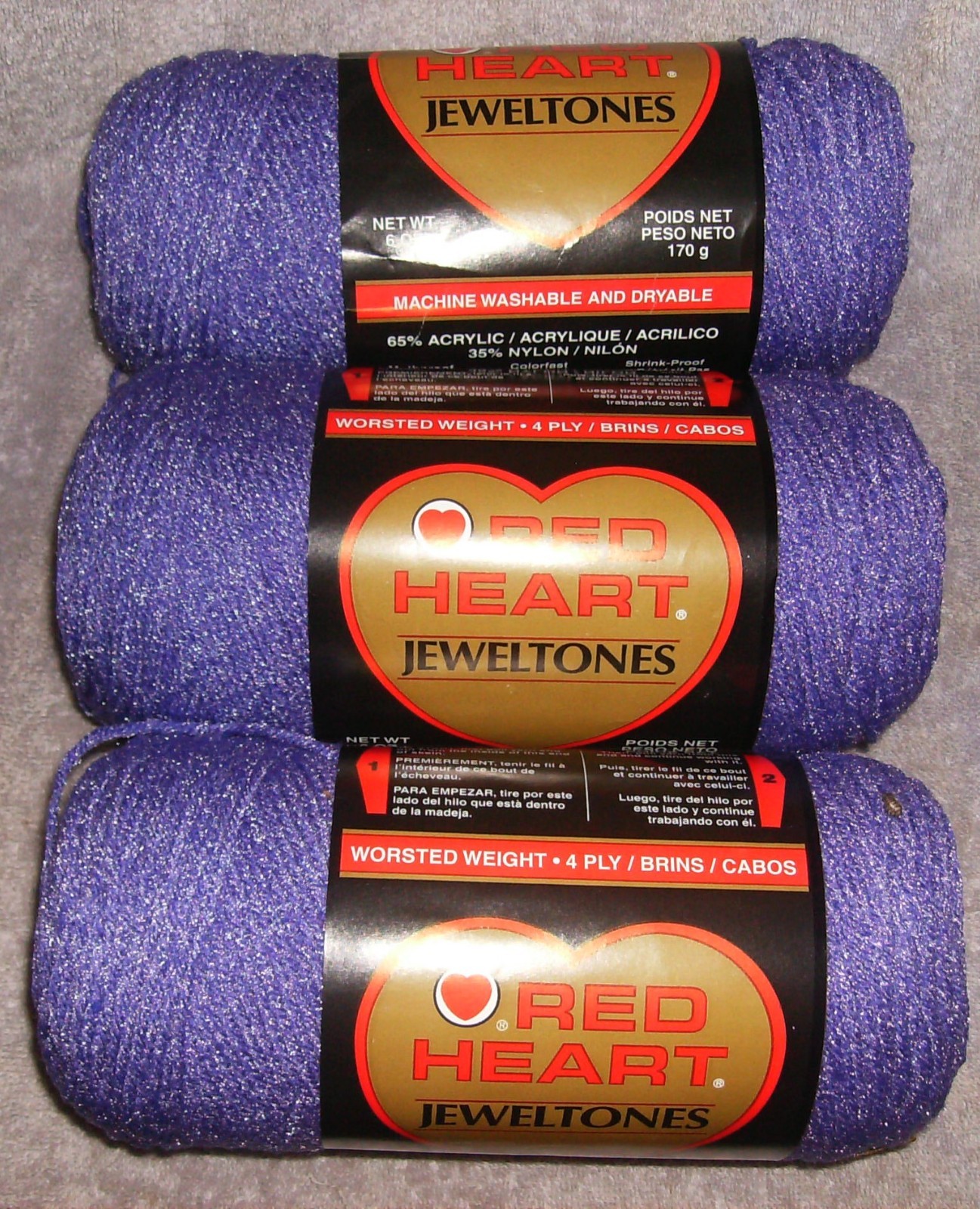 как выглядит 3 LG SKEIN RED HEART JEWELTONES 3356 AMETHYST YARN MADE IN USA 6 OZ x 3 18 OZ фото