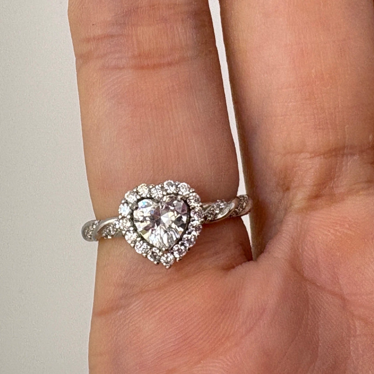 VTG Sterling Silver 925 Heart CZ Halo Ring Twist Band Engagement Promise Sz 7