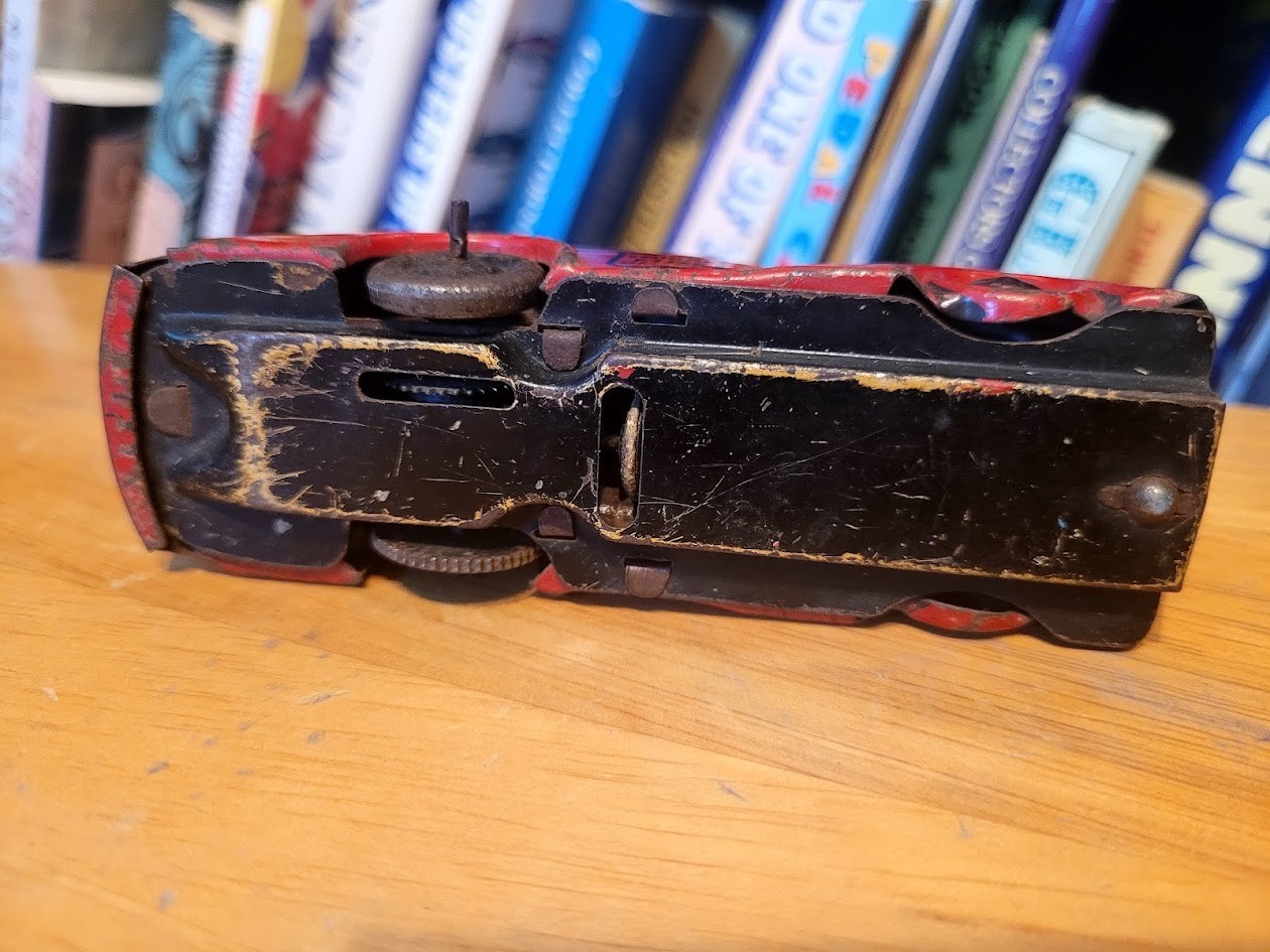 NICE VINTAGE 1930'S MARX TIN LITHO RED WIND UP TRICKY FIRE CHIEF CAR