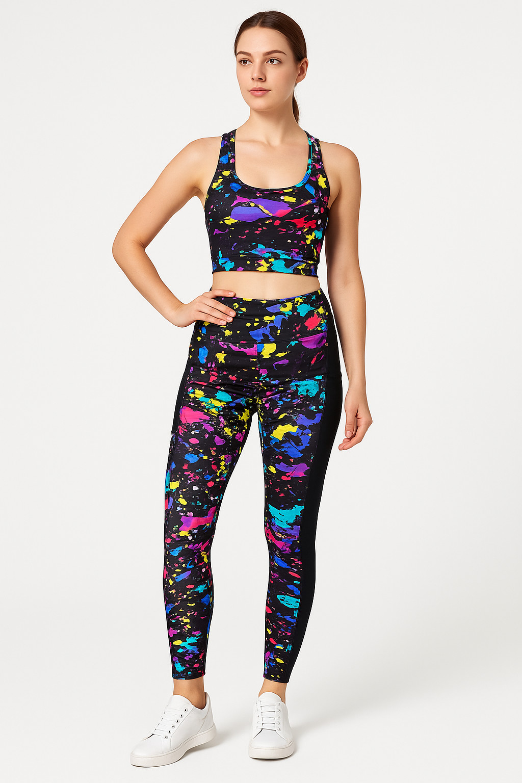 Women s Multicolor Splatter 2 Piece Workout Set Sports Bra High Waisted Leggings