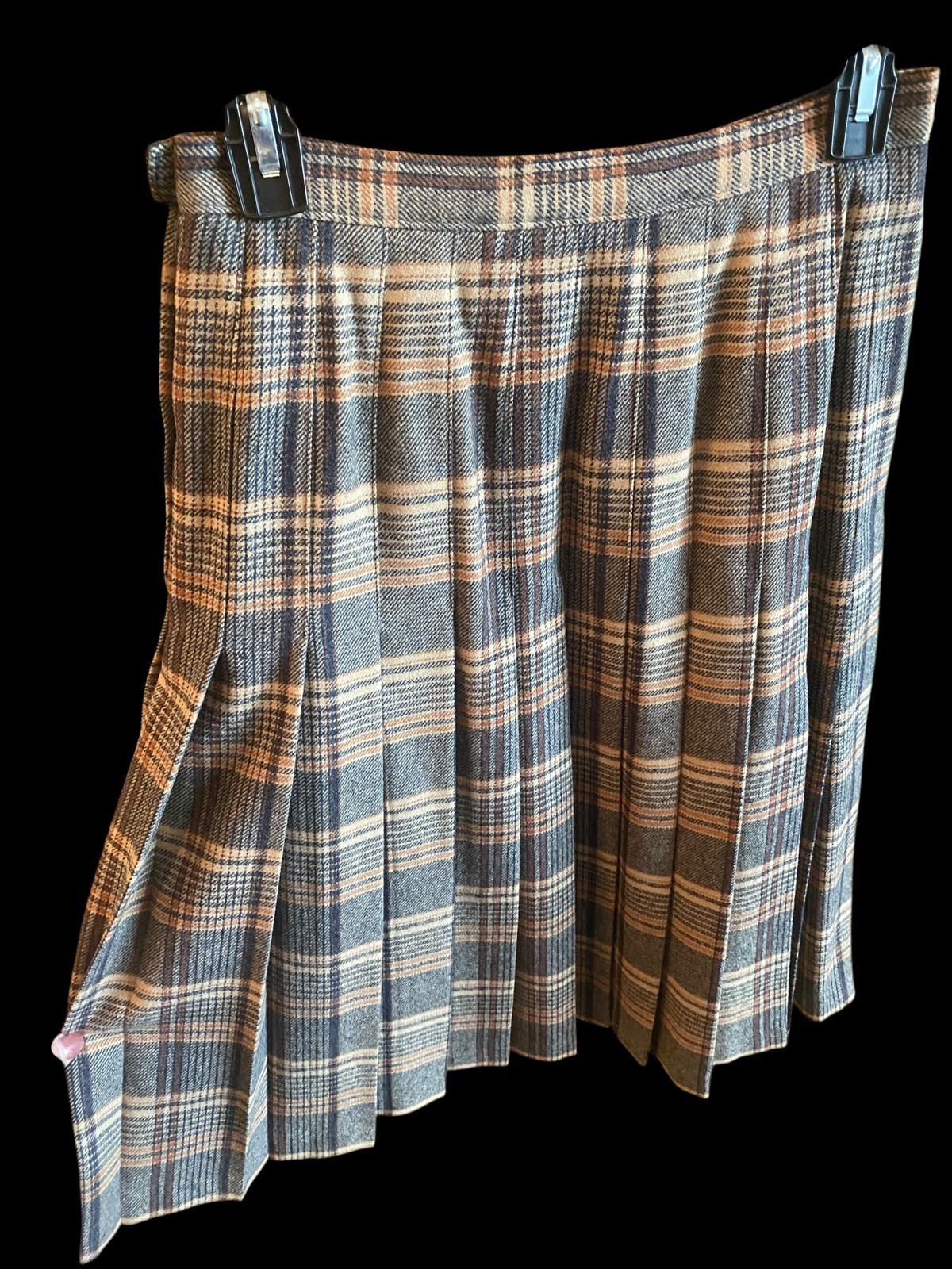 как выглядит ViNTAGE PENDLETON PETiTE BLACK BROWN PLAiD PLEATED WOOL MiDi SKiRT sz/10 w/26 фото