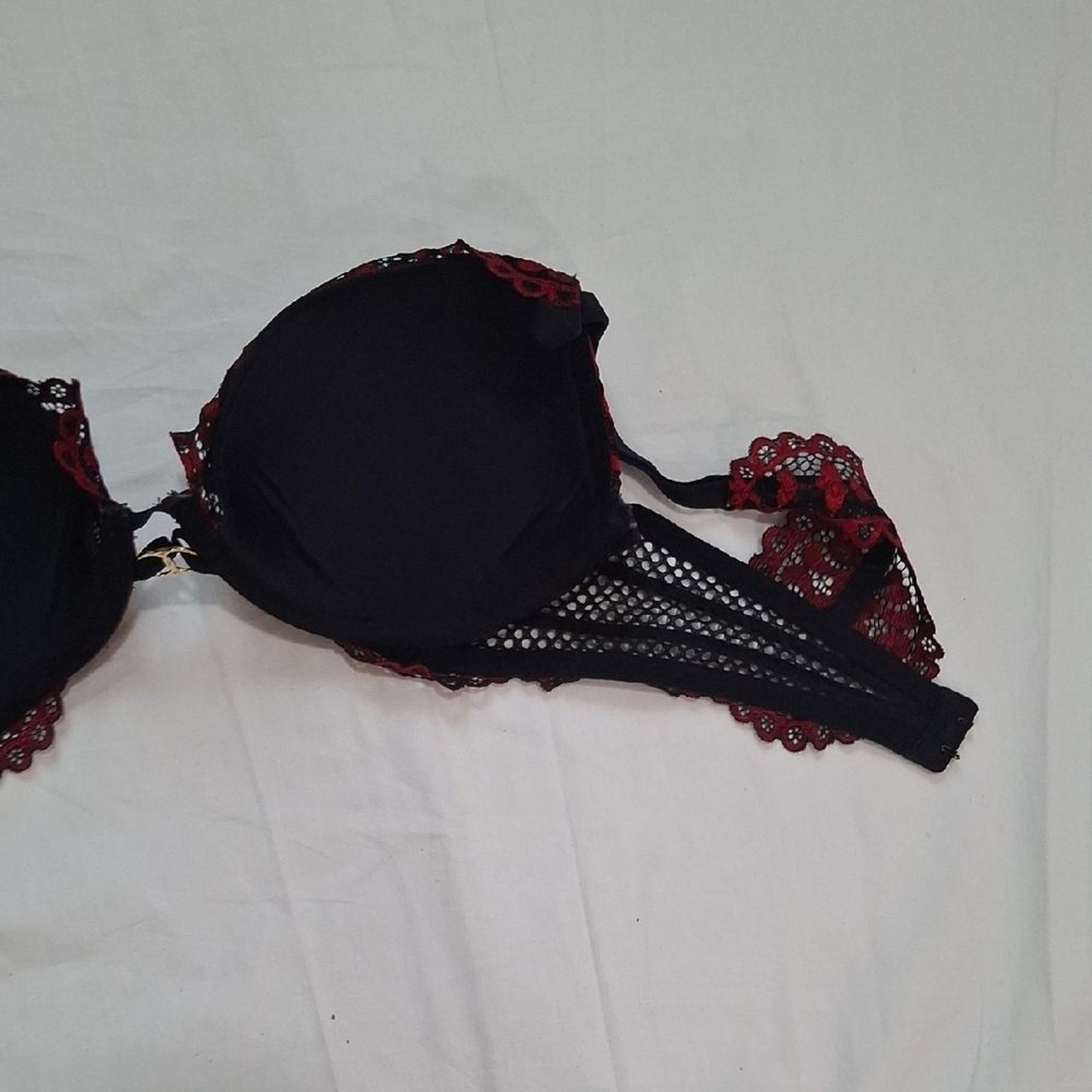 как выглядит La SENZA Red and Black Lace Bra Size 34 C фото