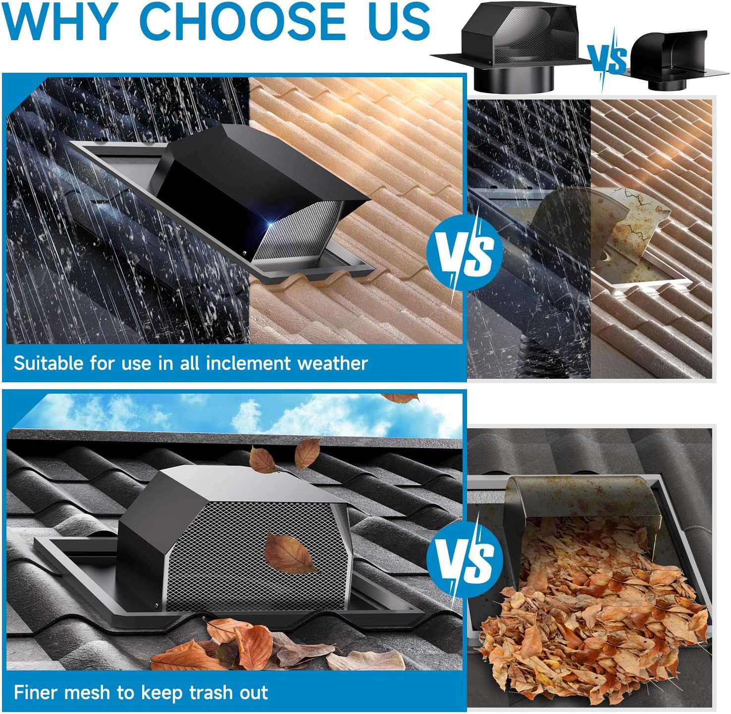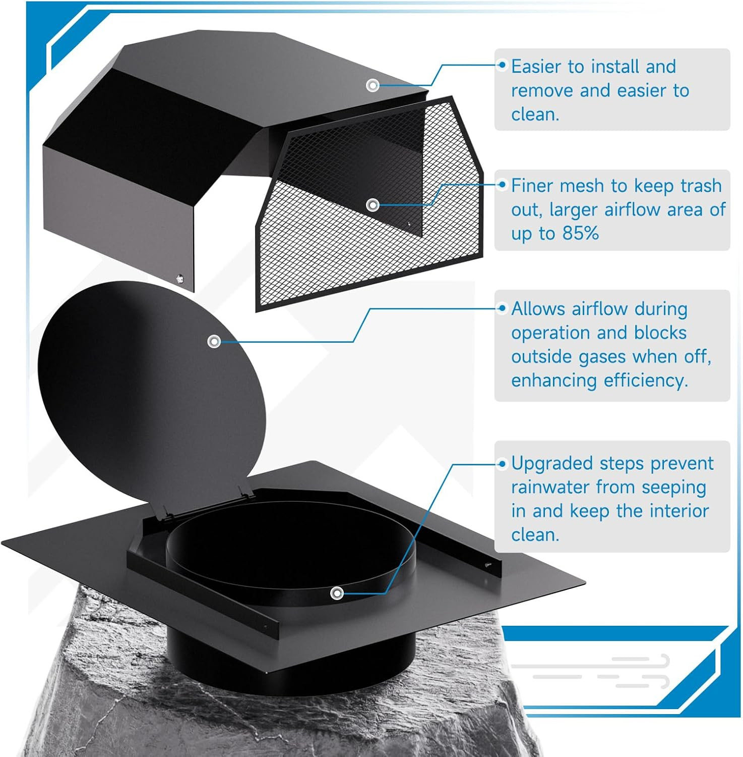 4 Roof Vent Cap w/ Damper Galvanized Steel Exhaust Cover for House HVAC Duct