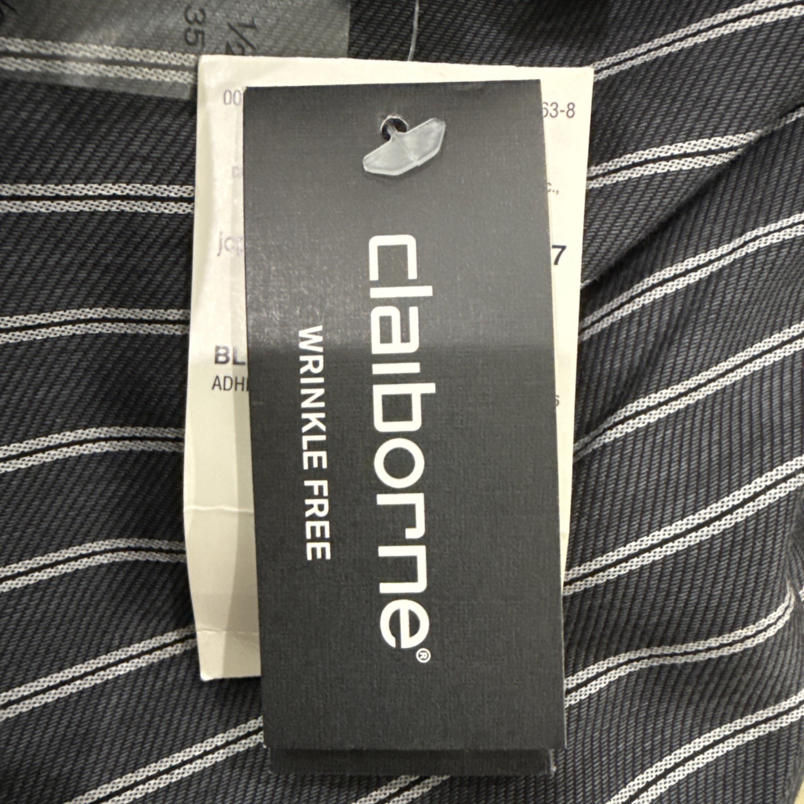 как выглядит Claiborne Wrinkle Free Mens Black Texture Stripe Collared Shirt фото