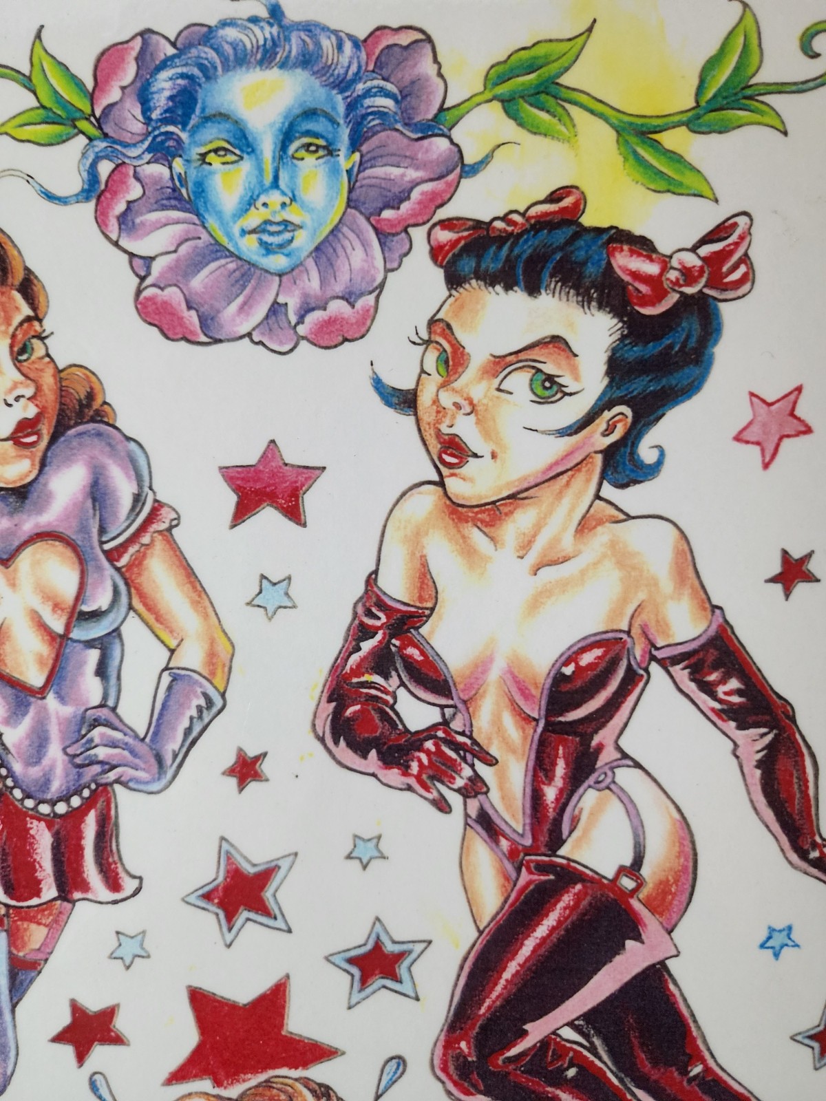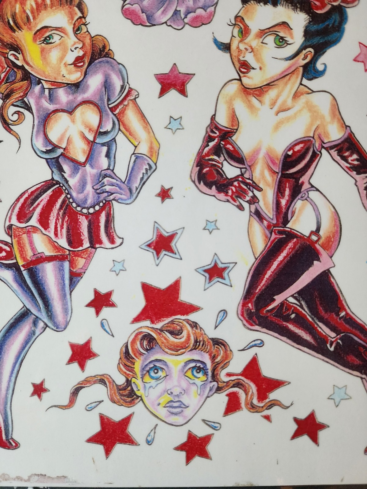 как выглядит Vintage 1997 Timothy Hoyer Traditional Tattoo Flash Sheet Shop Used Girls фото