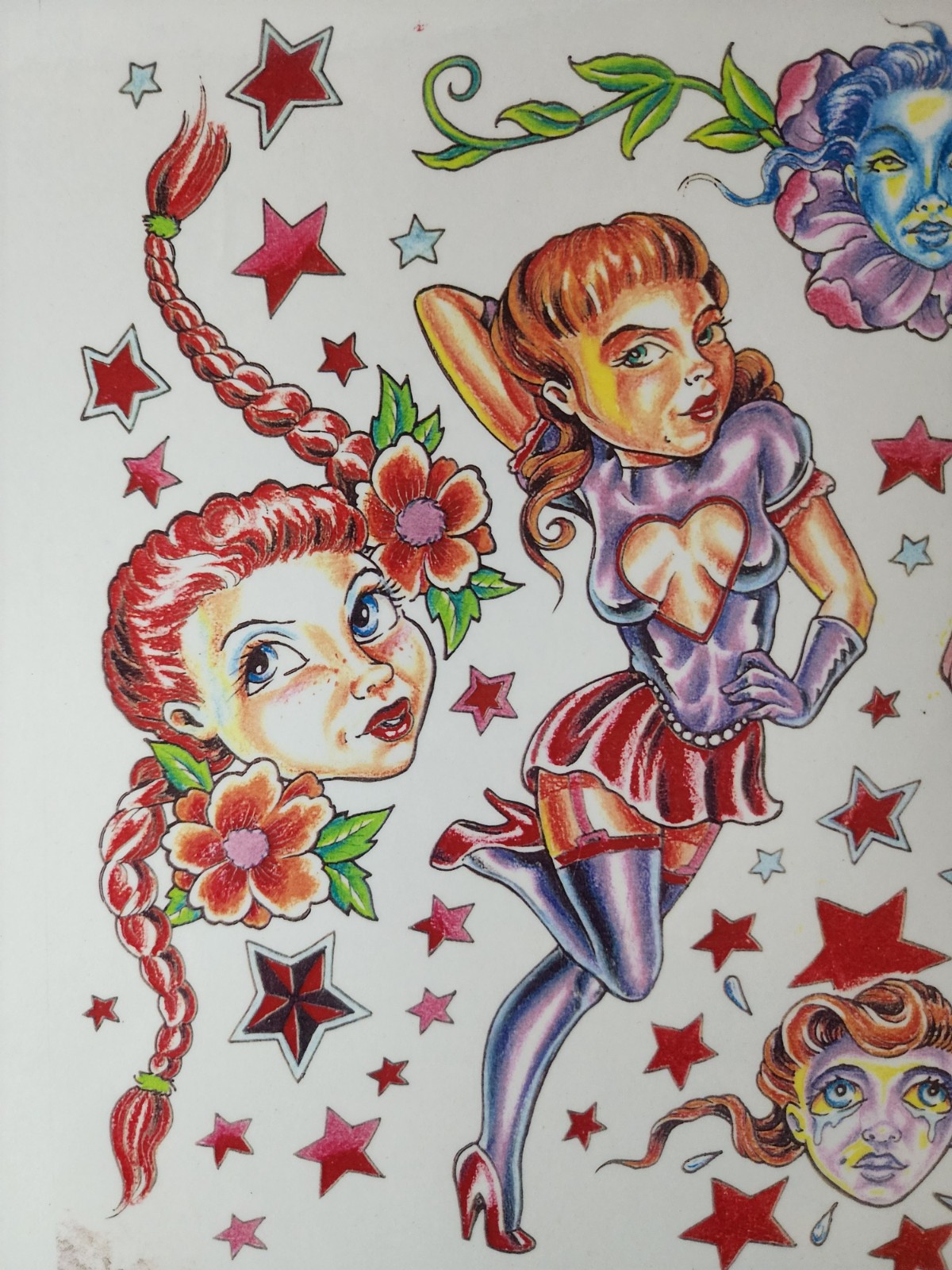 Vintage 1997 Timothy Hoyer Traditional Tattoo Flash Sheet Shop Used Girls