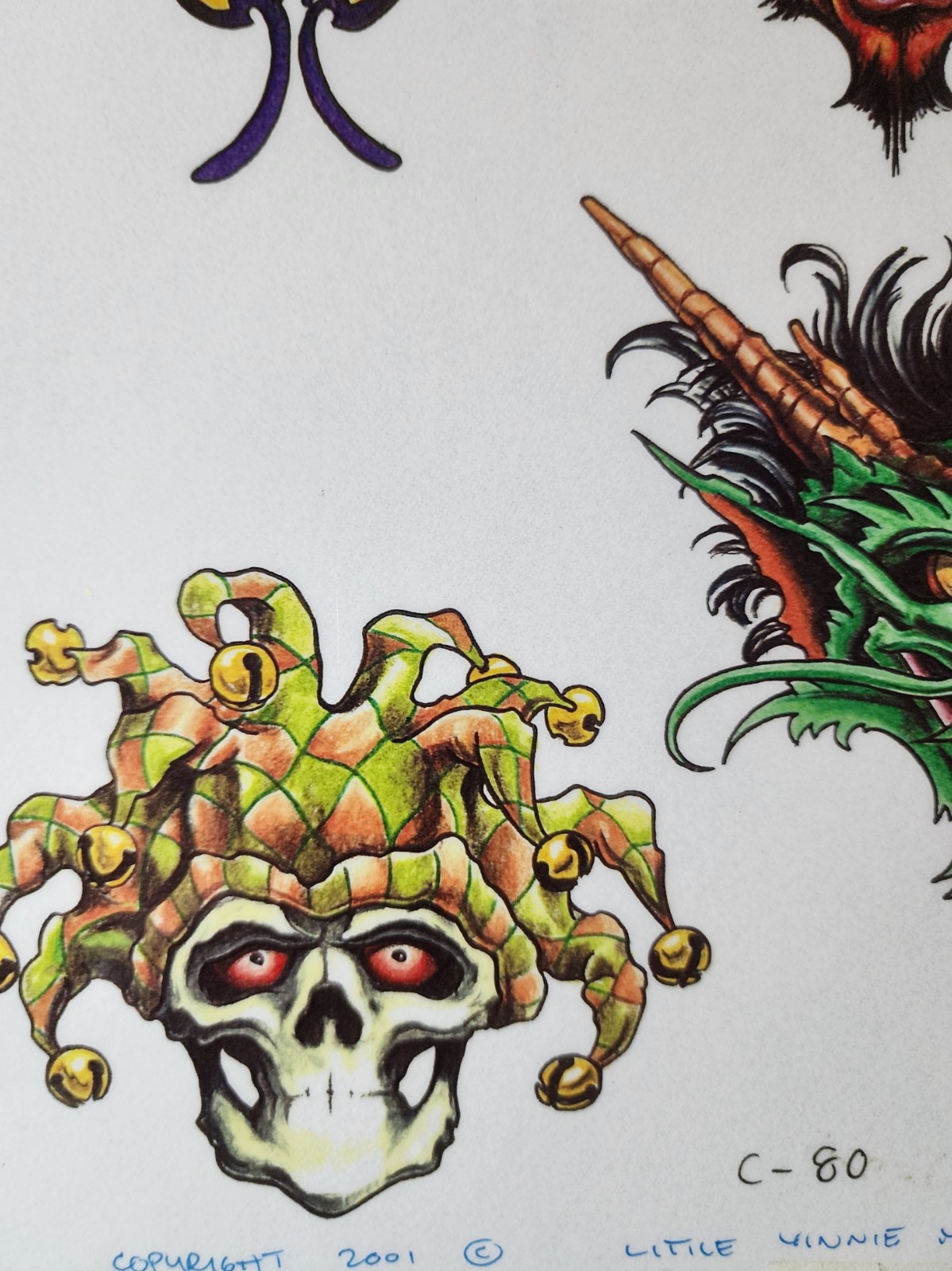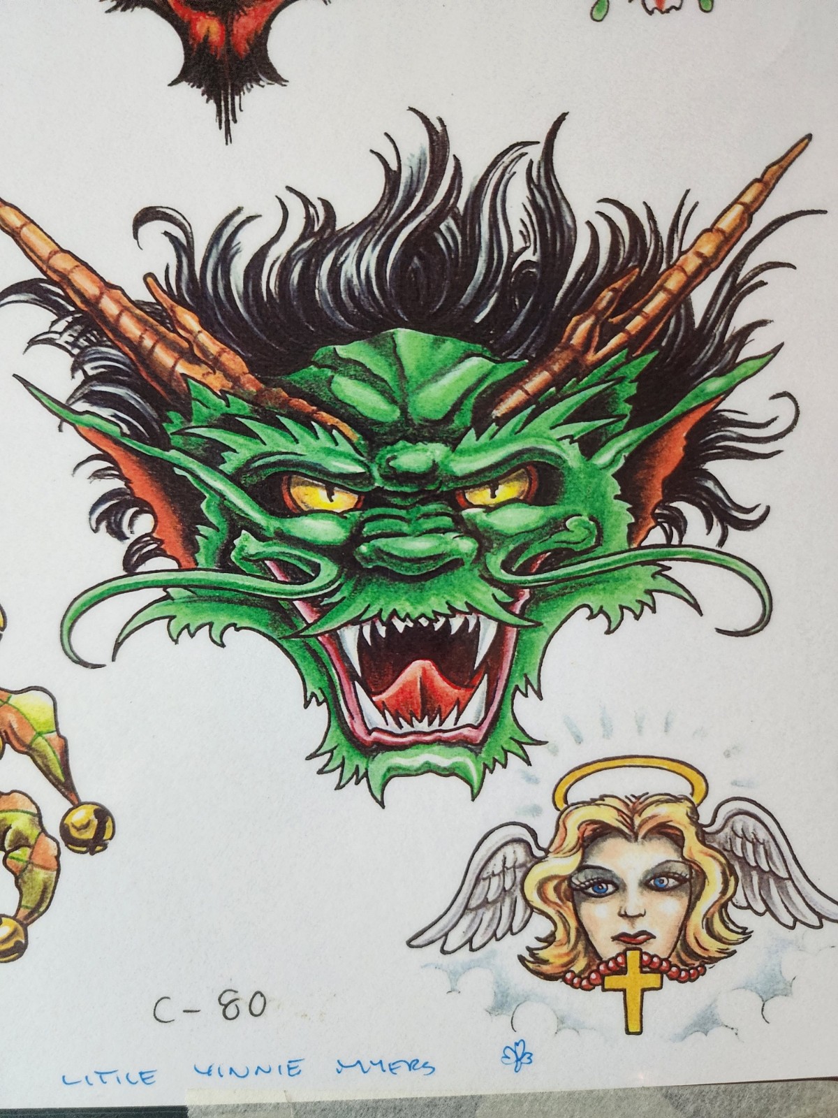 Vintage 2001 Little Vinnie Myers Traditional Tattoo Flash Sheet Shop Used, Devil