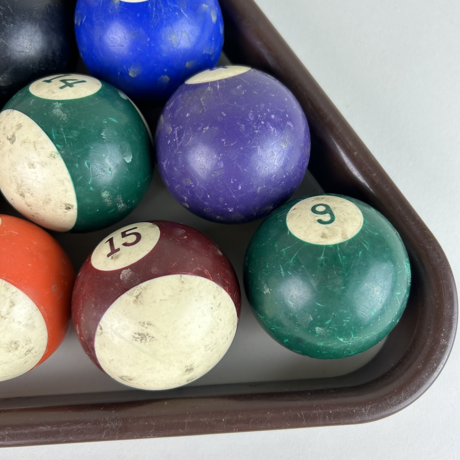 Vintage Complete Set Billiard Pool Balls 2.25 Cue Triangle Rack