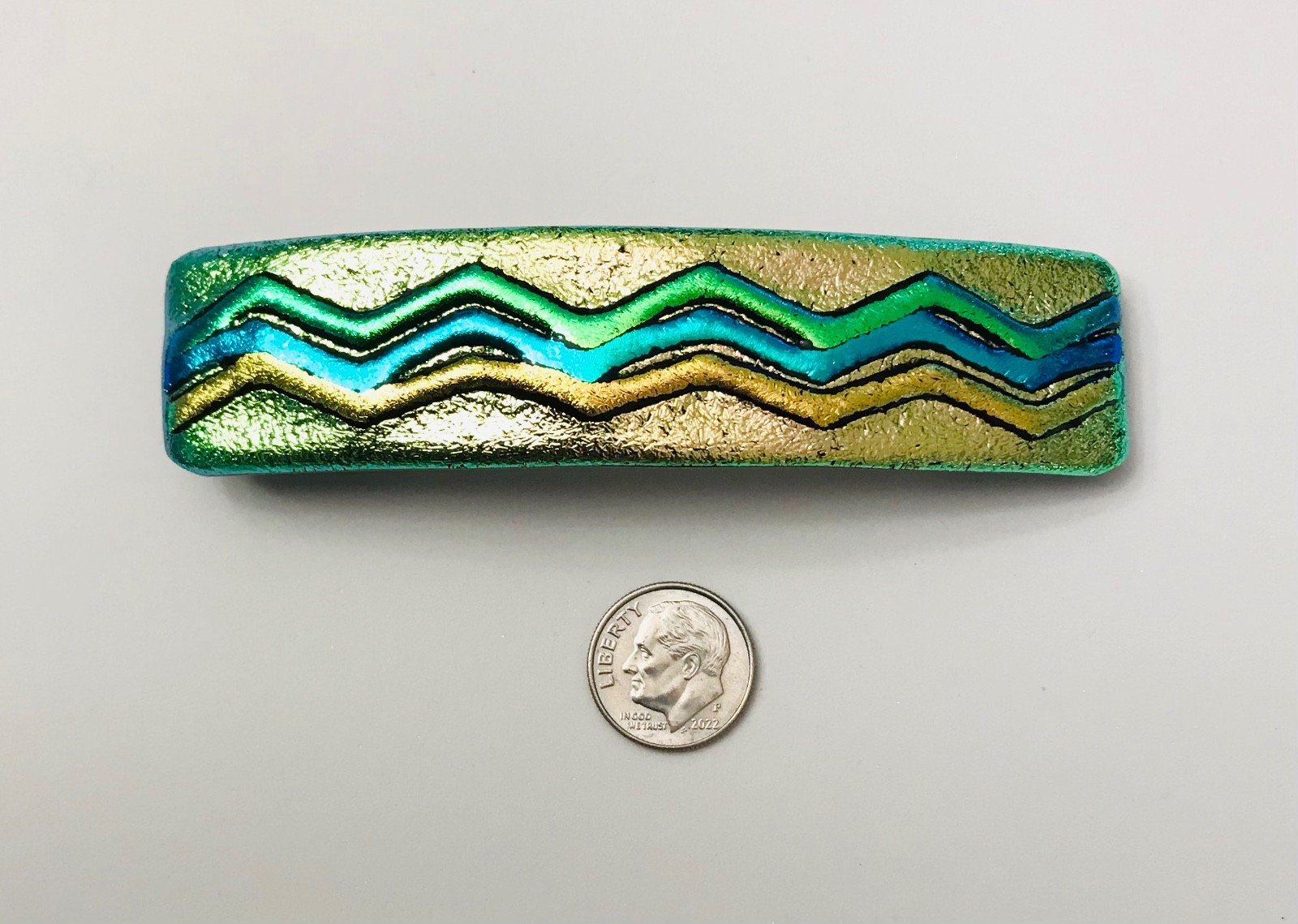 Dichroic Fused Glass Hair Barrette Handmade by Janet Wolery - 4 - ZIGZAG 2