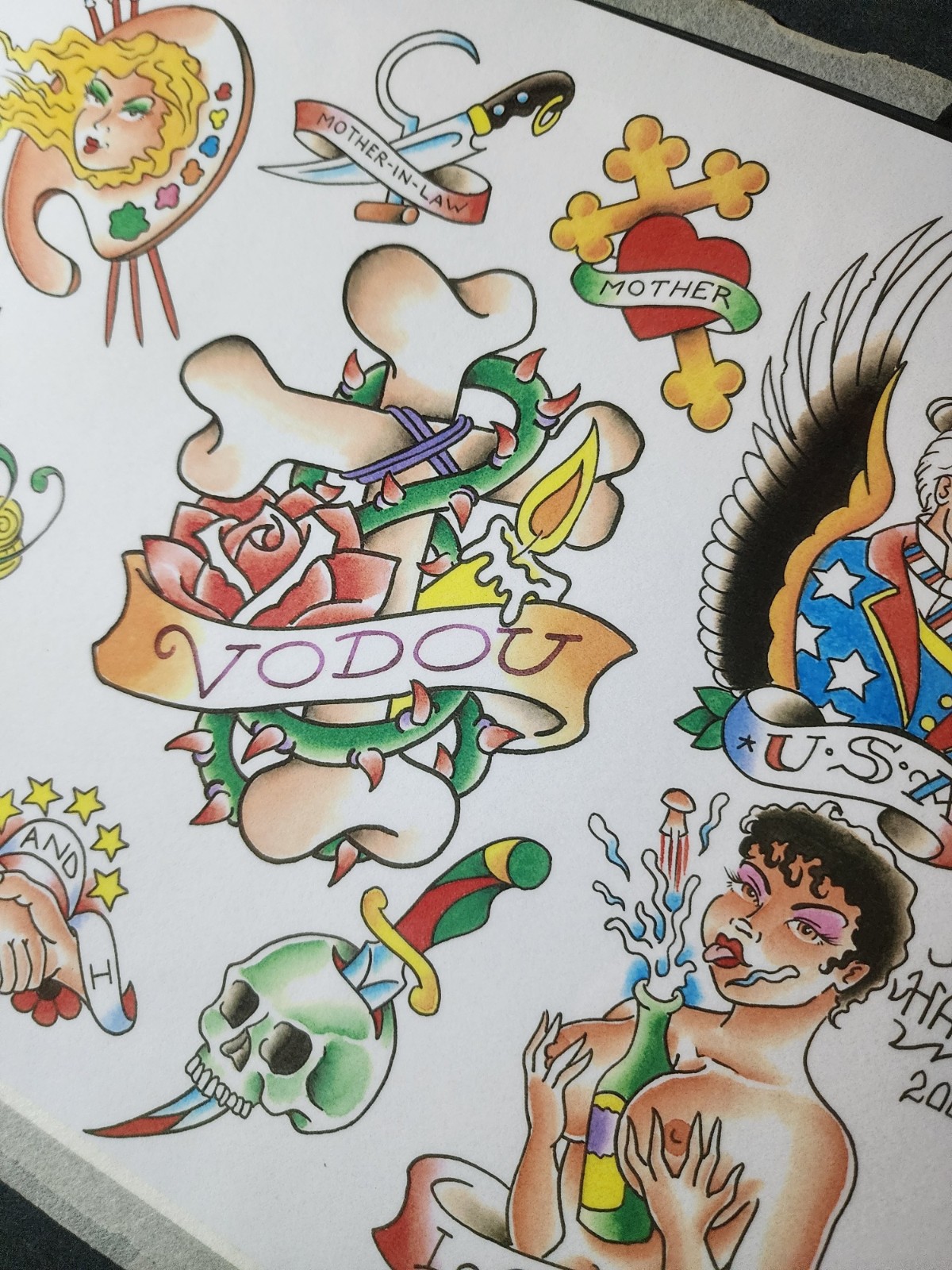 2002 Doug Hardy Traditional Vintage Style Tattoo Flash Sheet Shop Used Girls USA