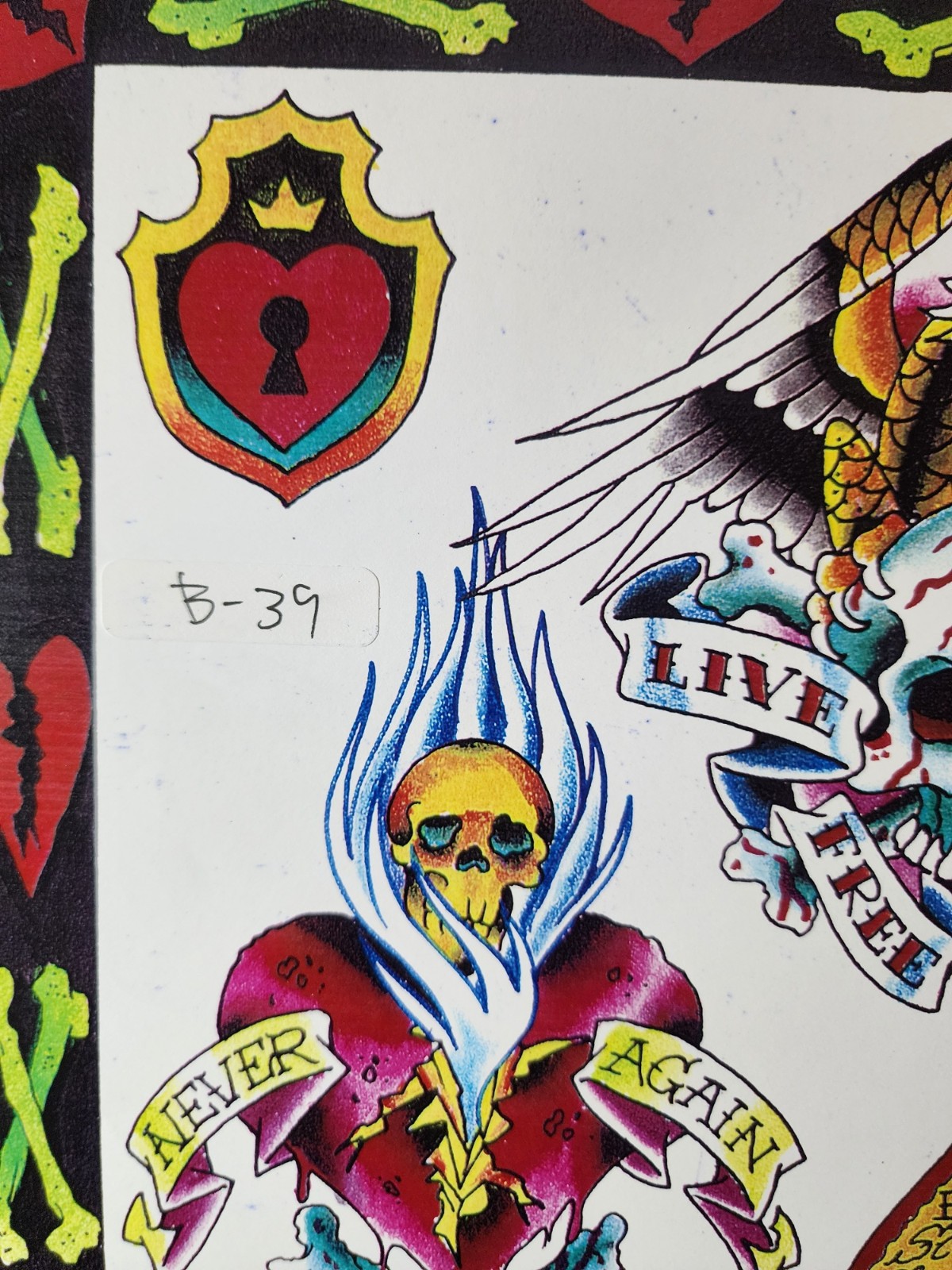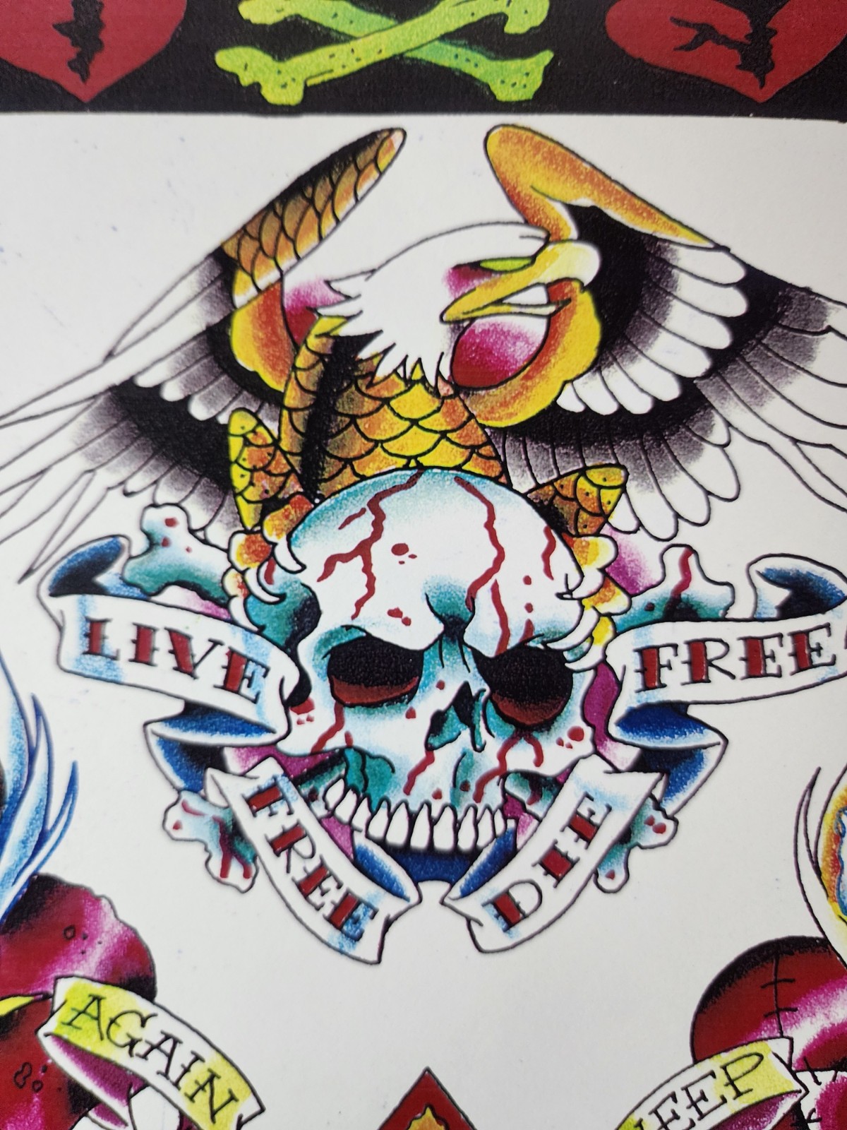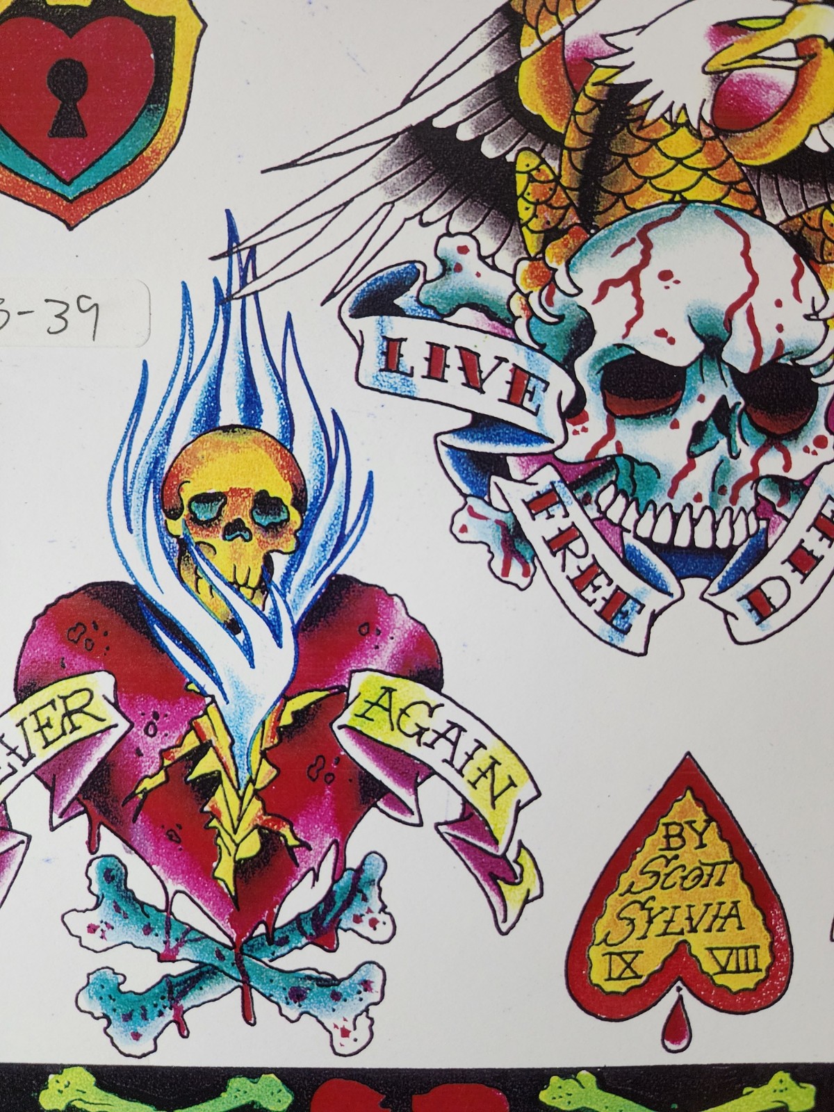 как выглядит Scott Sylvia Traditional Vintage Tattoo Flash Sheet Shop Used Live Free, Biker фото
