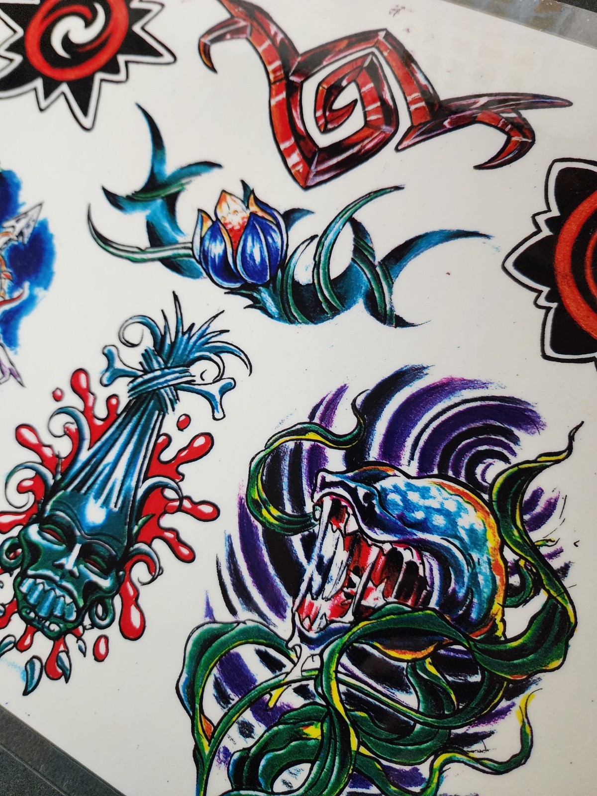 Vintage 1996 Frank Lee Traditional Style Tattoo Flash Sheet Shop Used Tribal